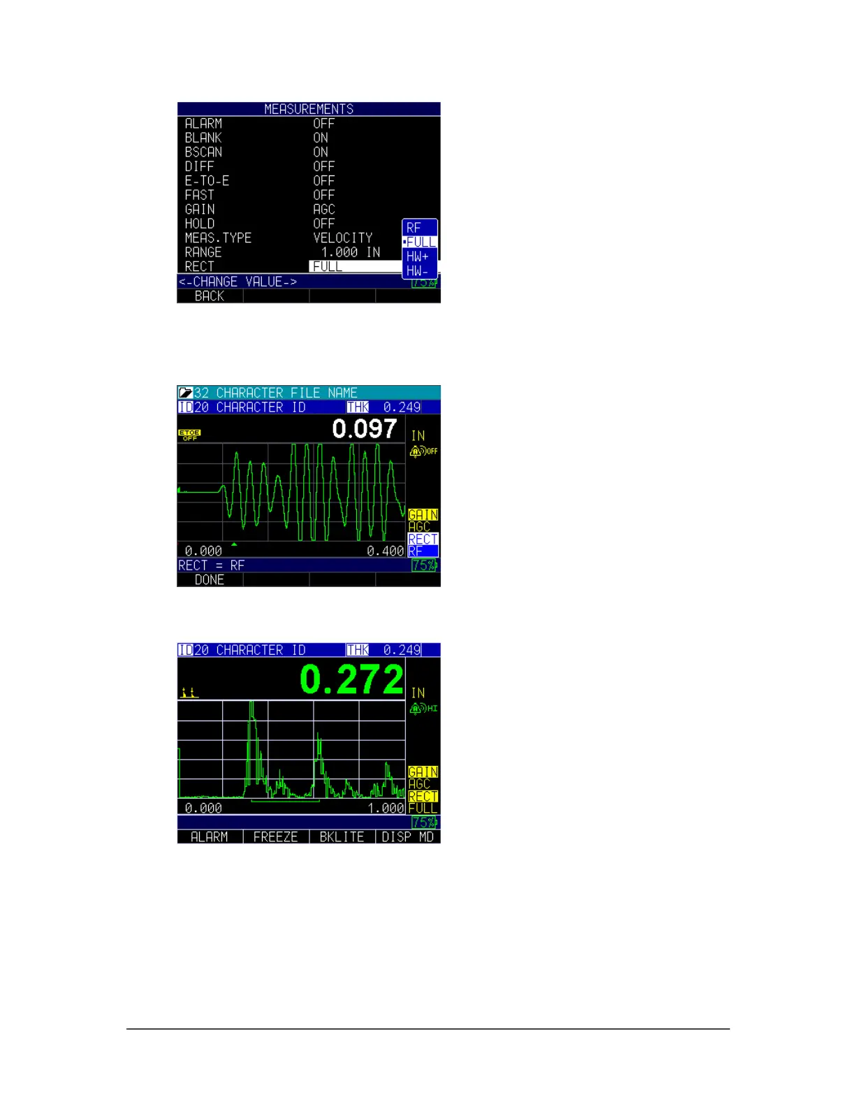 Full: Displays the negative section of the echo folded around the baseline so that
