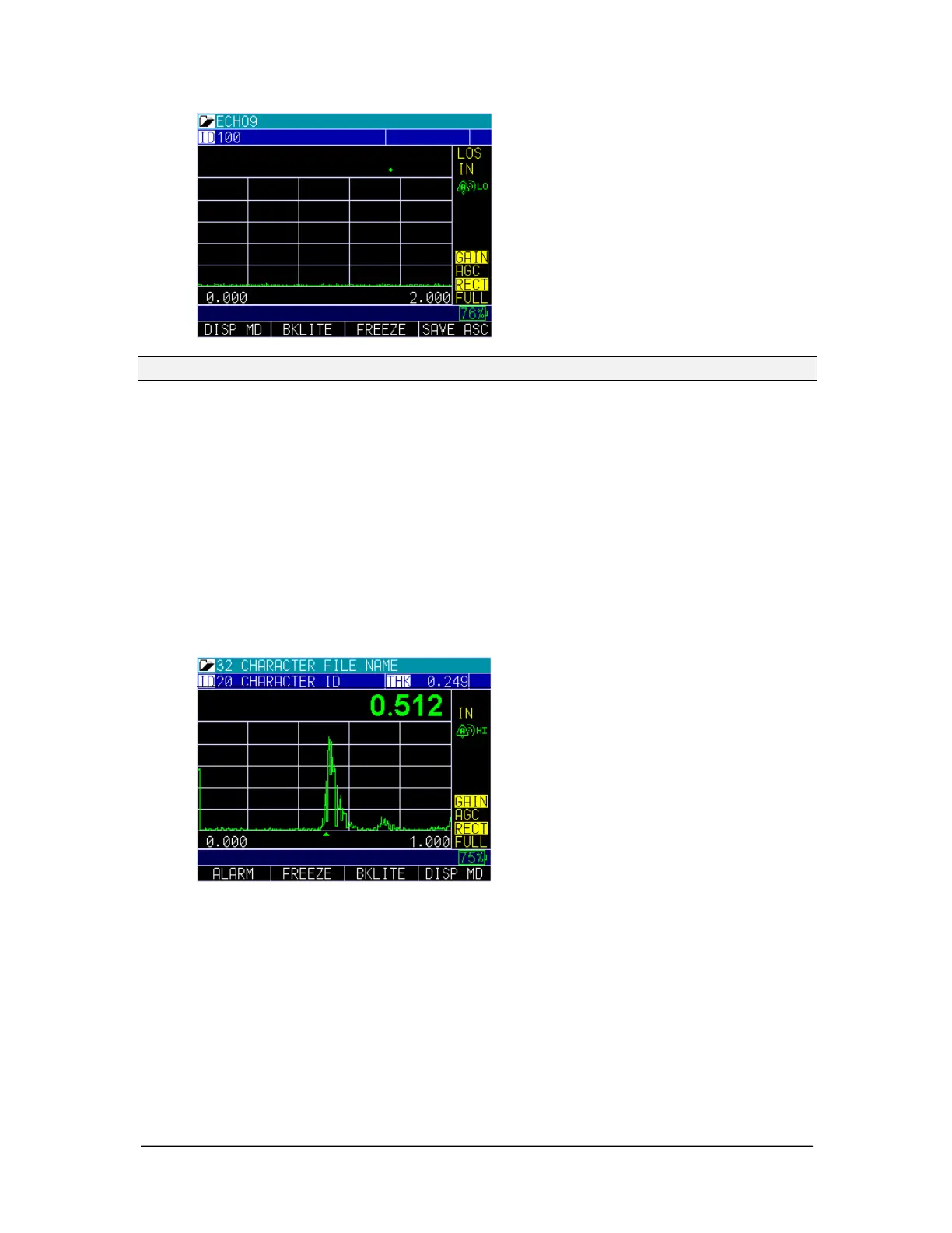 1. From the thickness measurement screen, press the F2 – Freeze key.