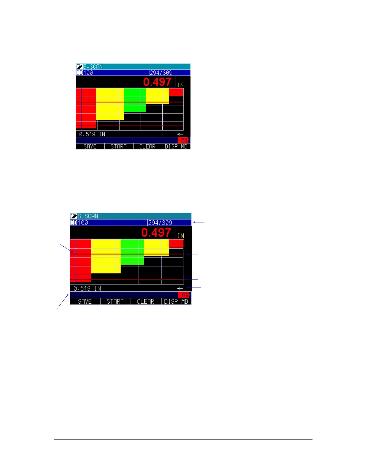 in the middle of the display. Use the left or right arrow to scroll the B-scan and see the