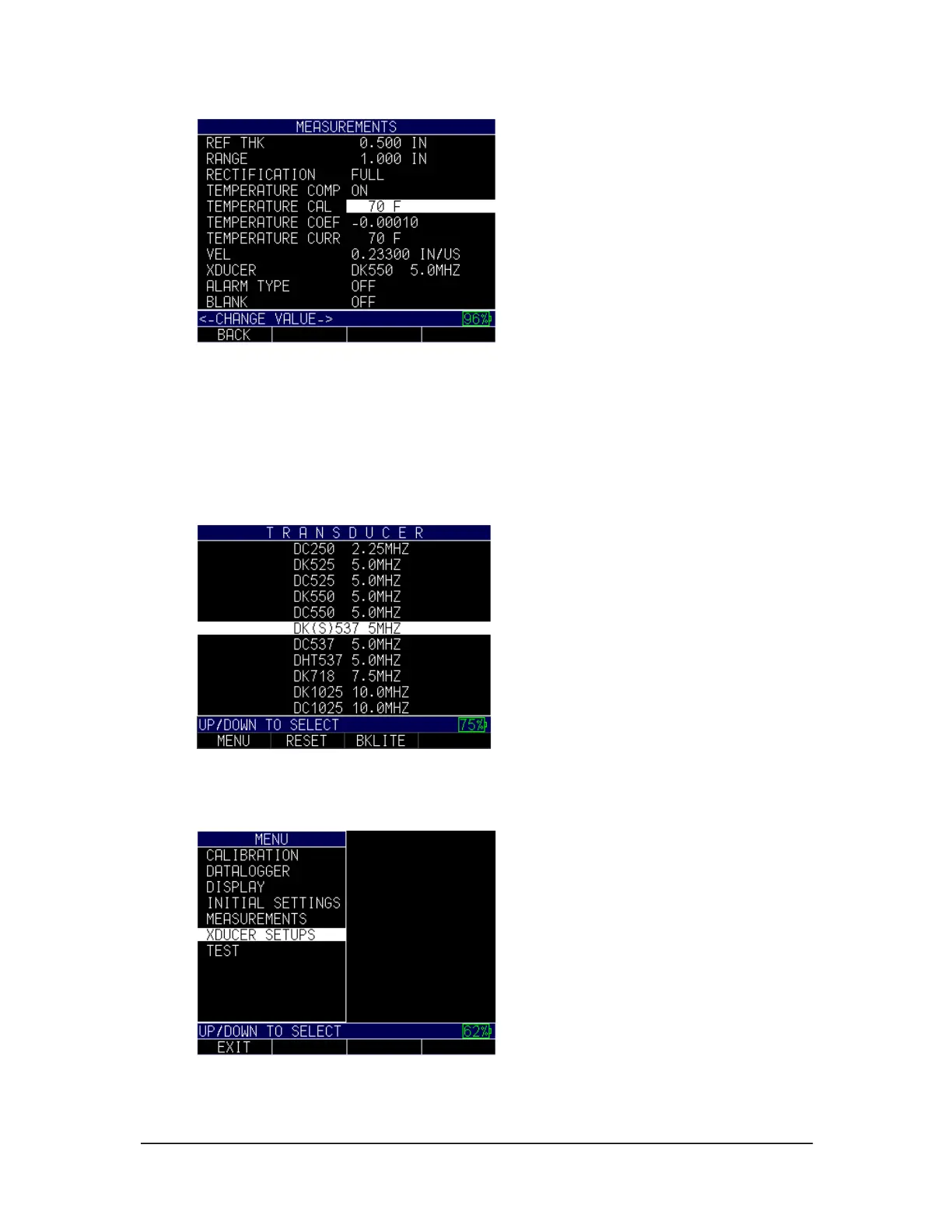 3. After scrolling to the Xducer Setups option, press the MENU/OK key. An