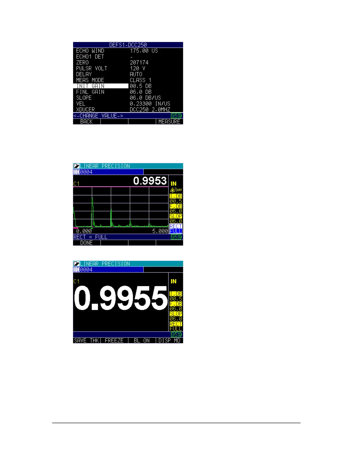 If you have a gage with thickness only, the screen will appear as shown below: