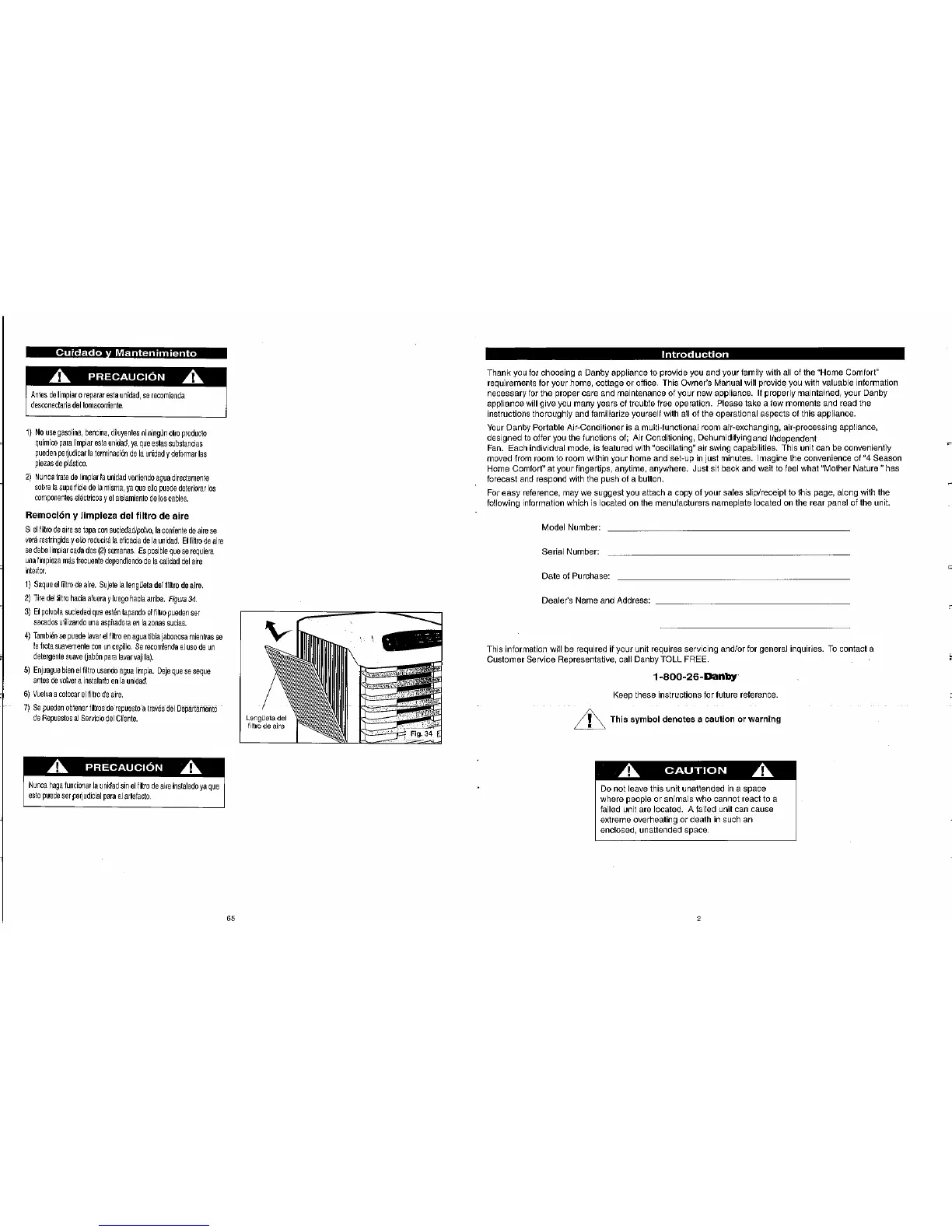 Danby APAC8040 - Care and Maintenance; Removal and Cleaning of the Air Filter