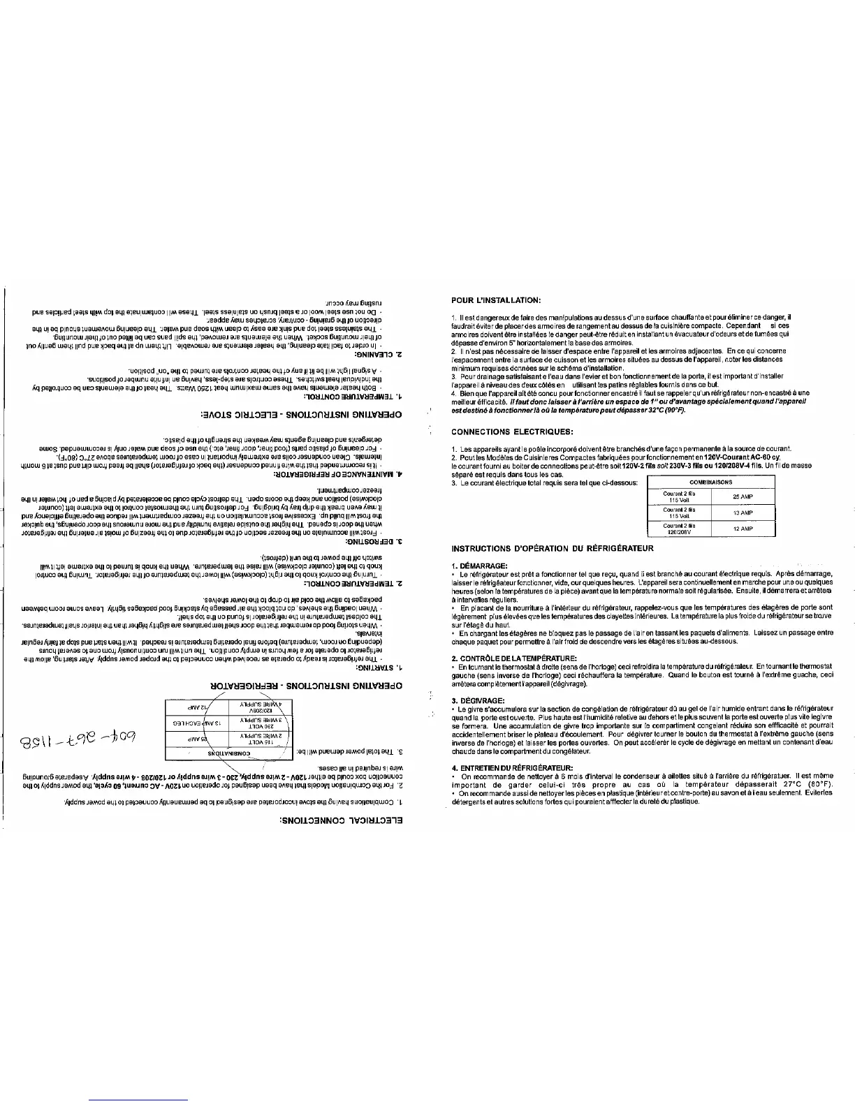 Danby D2000 - Refrigerator Operating Instructions; Starting and Temperature Control; Defrosting and Maintenance Procedures; Electric Stove Operating Instructions