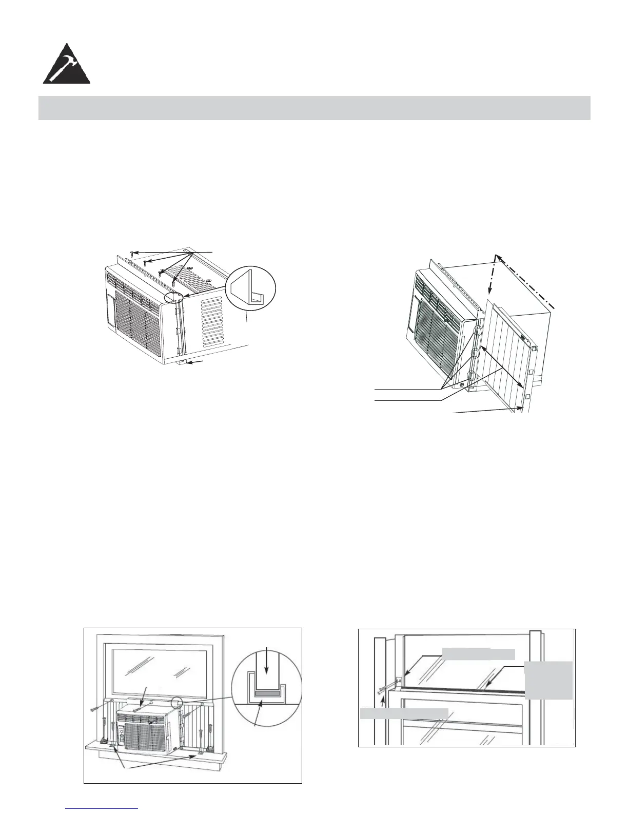 • Placez le climatiseur dans la fenêtre avec la pièce à rainure en forme de « L » (en haut) positionnée à l’avant du