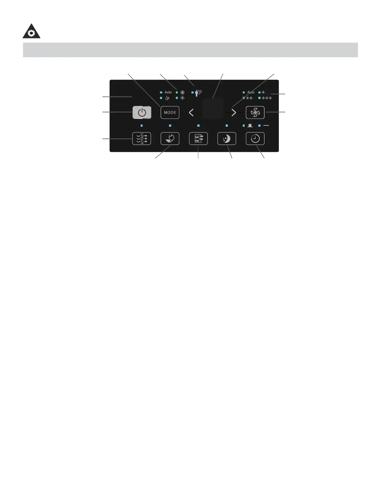 MODE: Allows you to scroll through and select the desired operating mode: Cool, Dry, Fan Only and *Auto. The selected