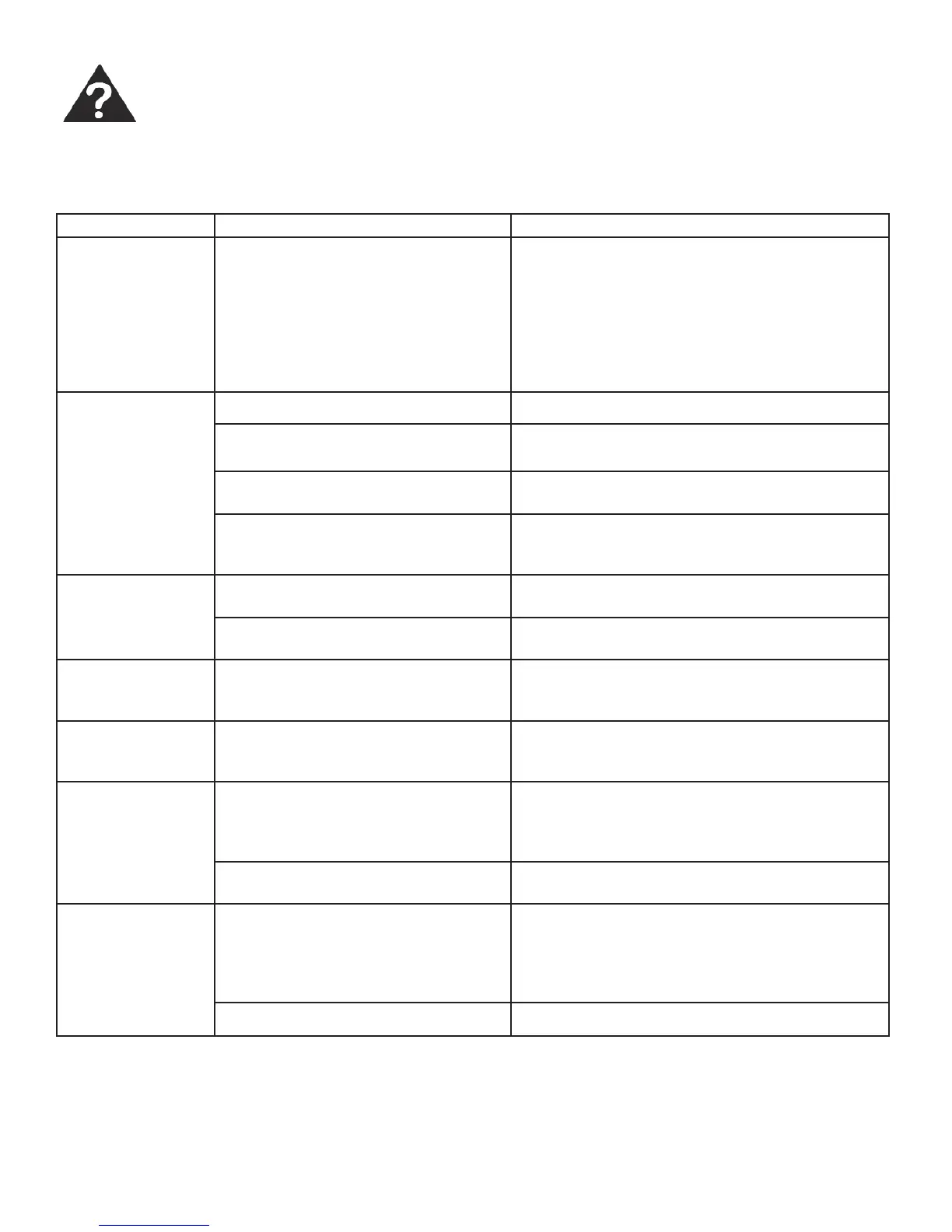• Aucun courant branché à l’appareil • Véri¿ ez le branchement du cordon d’alimentation