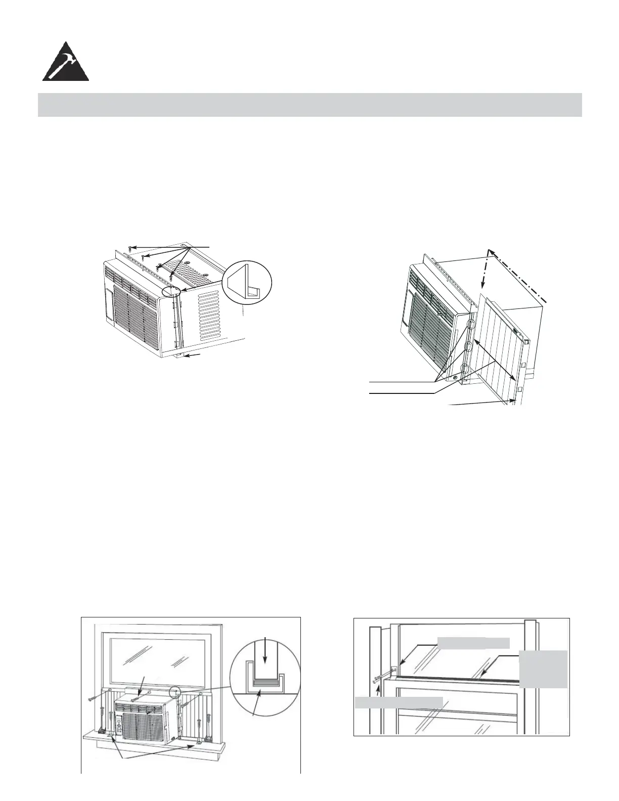 • Placez le climatiseur dans la fenêtre avec la pièce à rainure en forme de « L » (en haut) positionnée à l’avant du