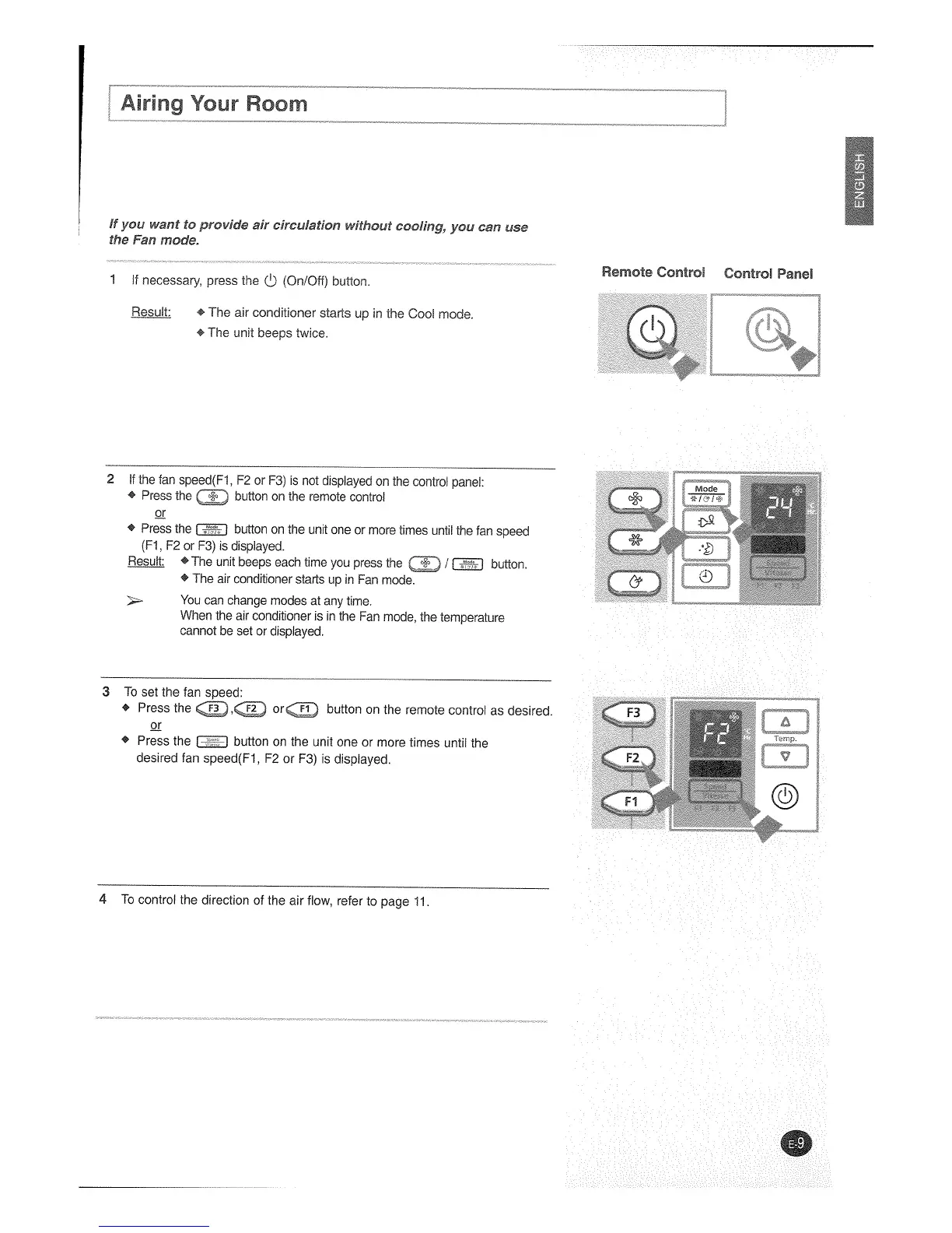 Danby DAC12078EE - Airing Your Room; Setting Fan Speed for Airing