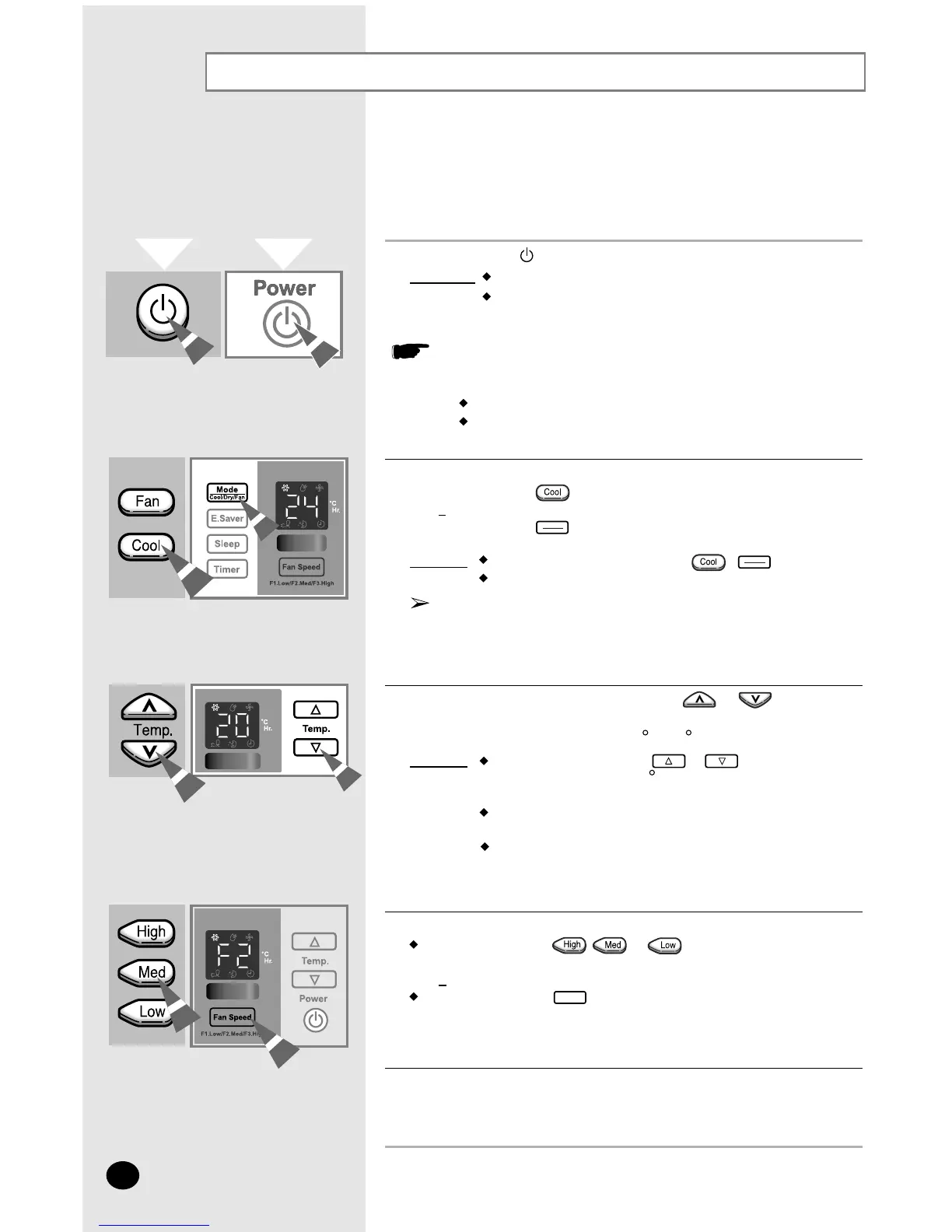 Para controlar la dirección del aire, fíjese en la página 11.