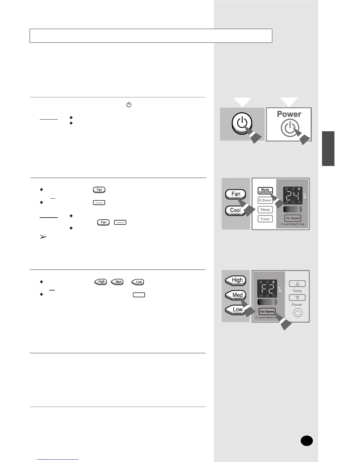 Le climatiseur se met en marche sur le mode de Fan.