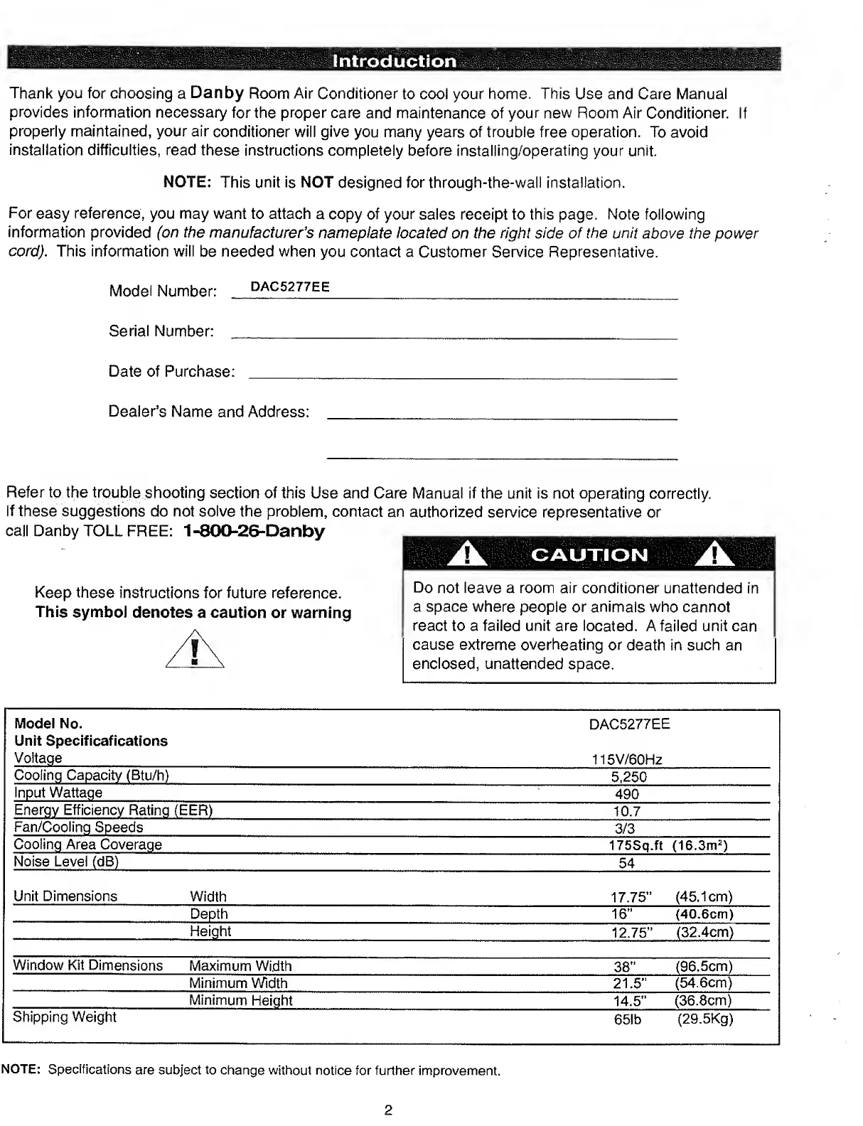 Danby DAC5277EE - Page 3