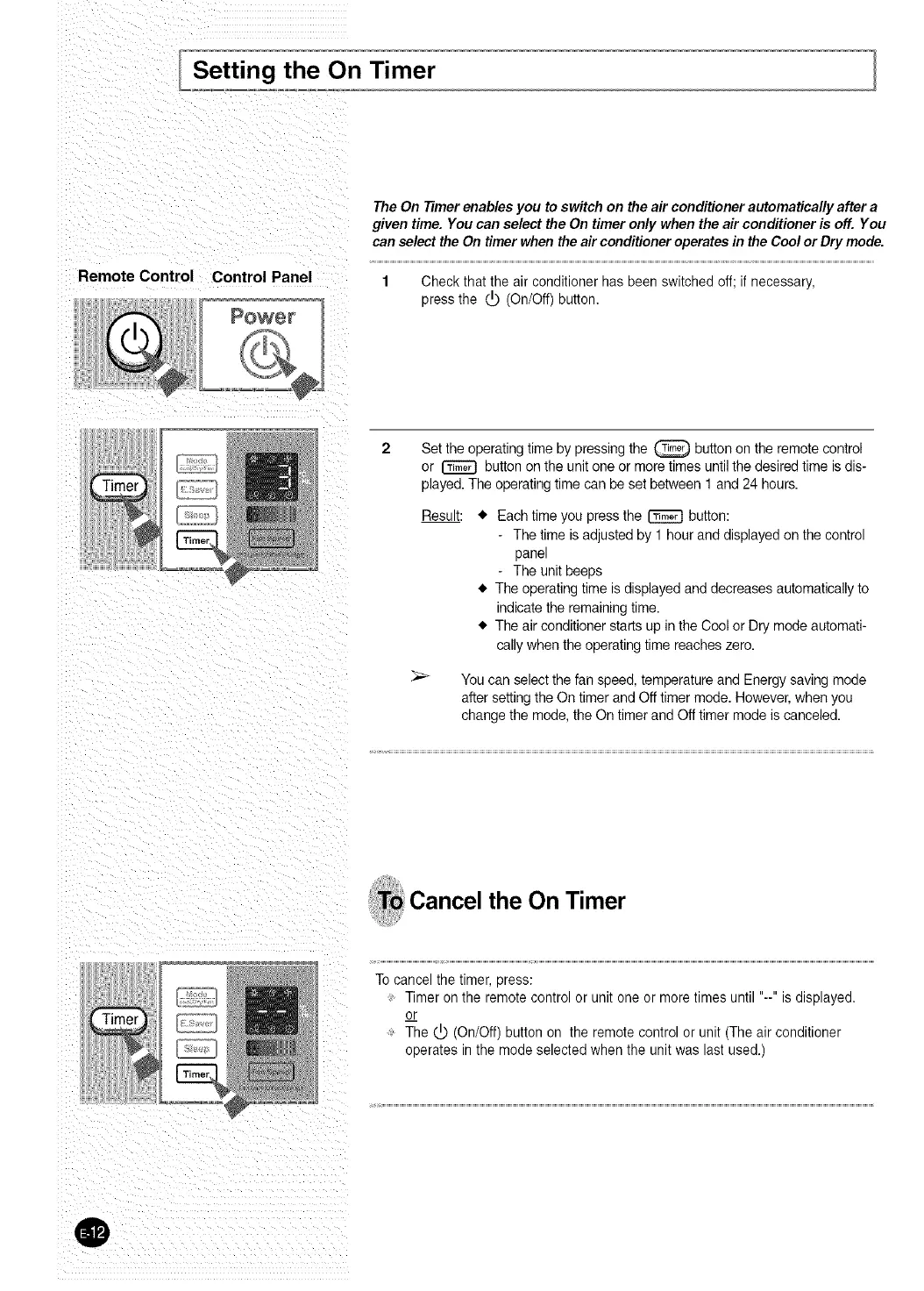 can select the On timer when the air conditioner operates in the Cool or Dry mode.