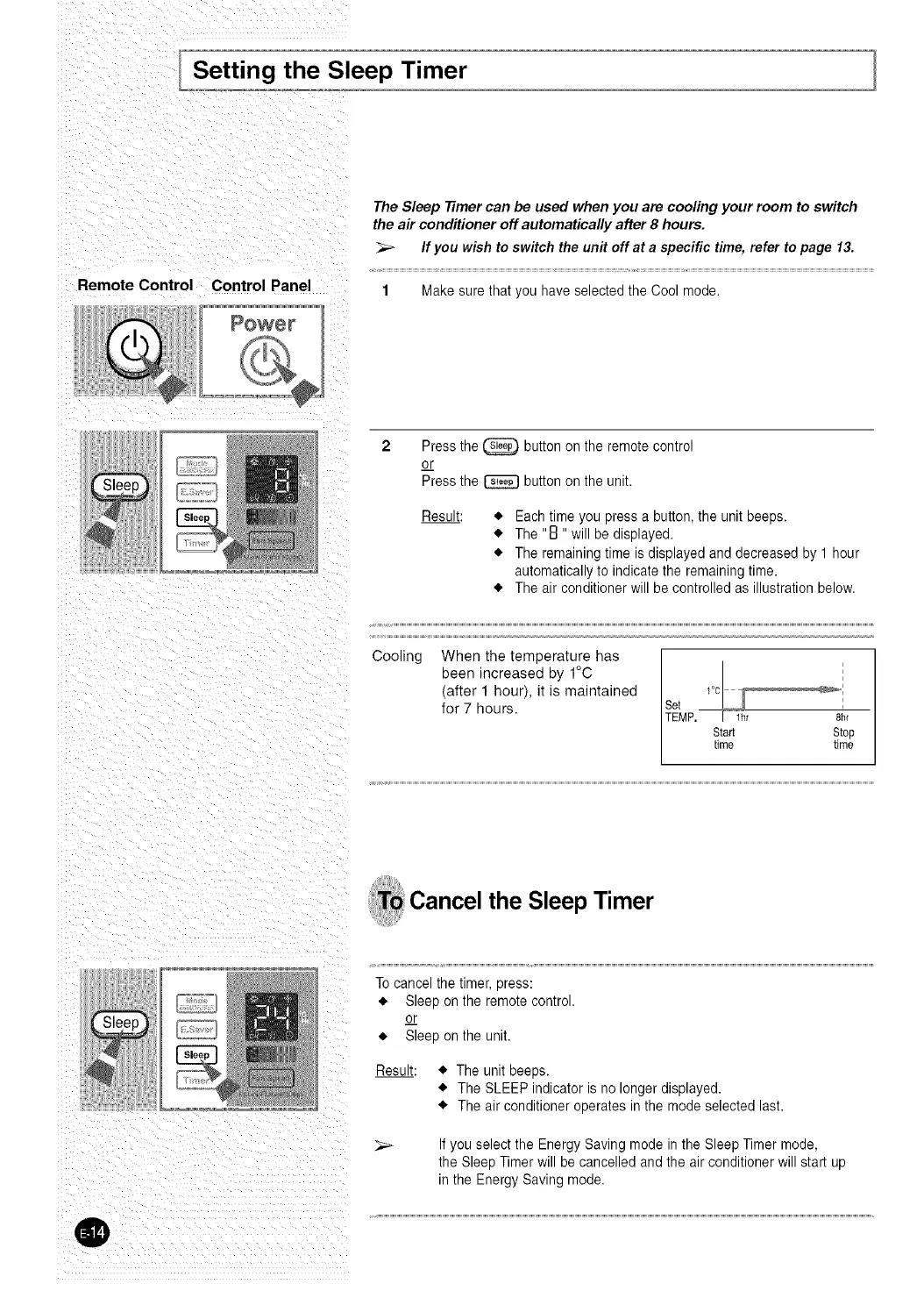 the Sleep Timer will be cancelled and the air conditioner will start up