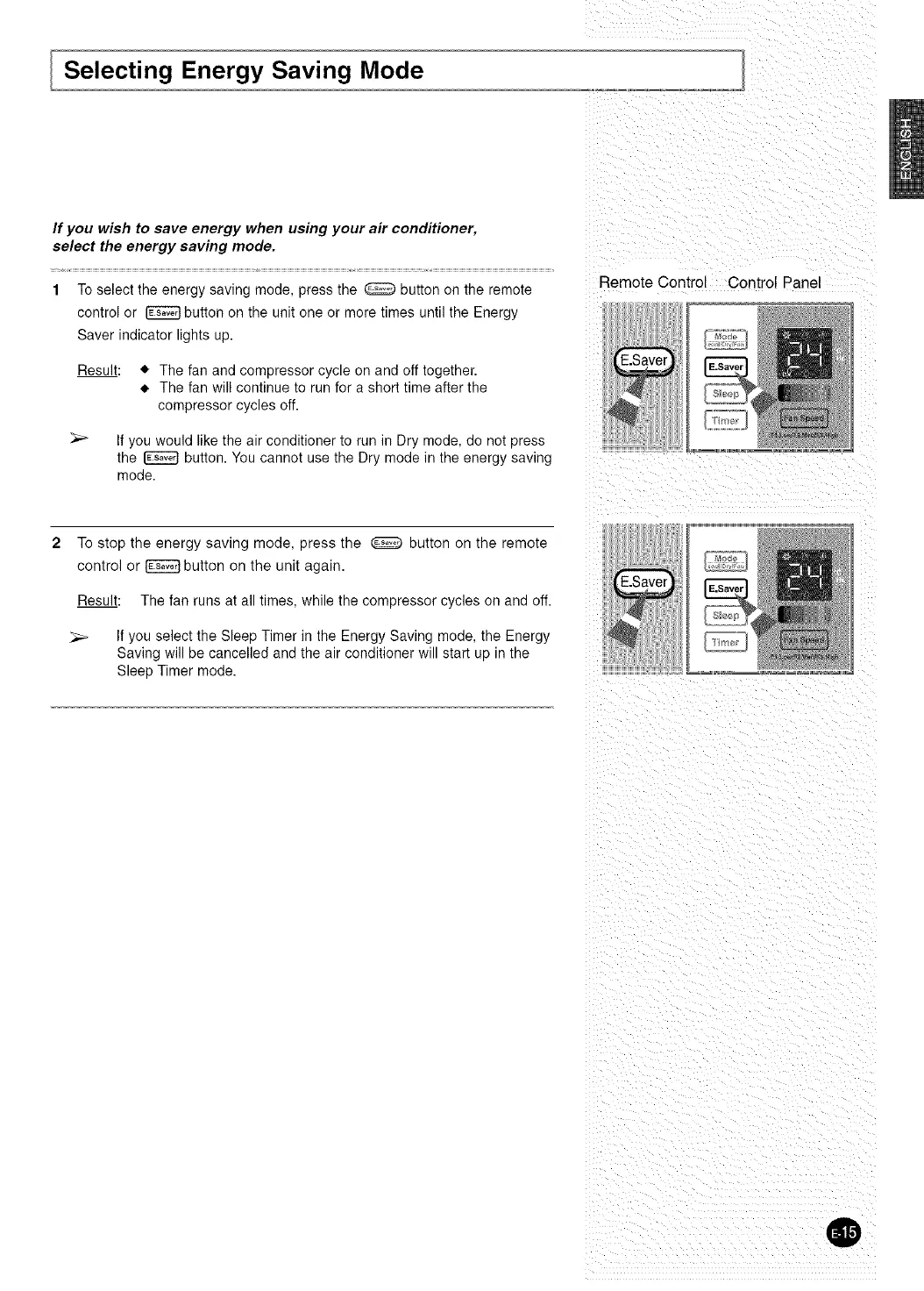 the _ button. You cannot use the Dry mode in the energy saving