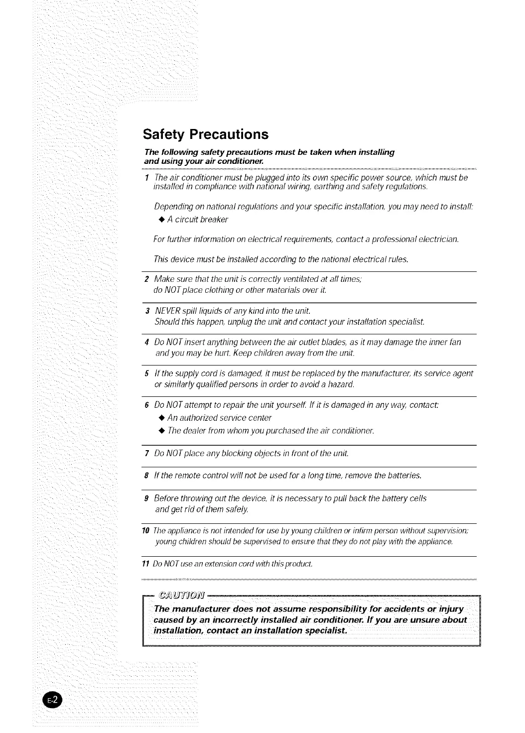 caused by an incorrectly installed air conditioner, ff you are unsure about j
