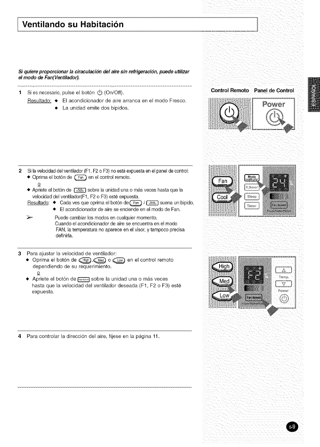 4 Para controlar la direcci6n del aire, fijese en la p_.gina 11.