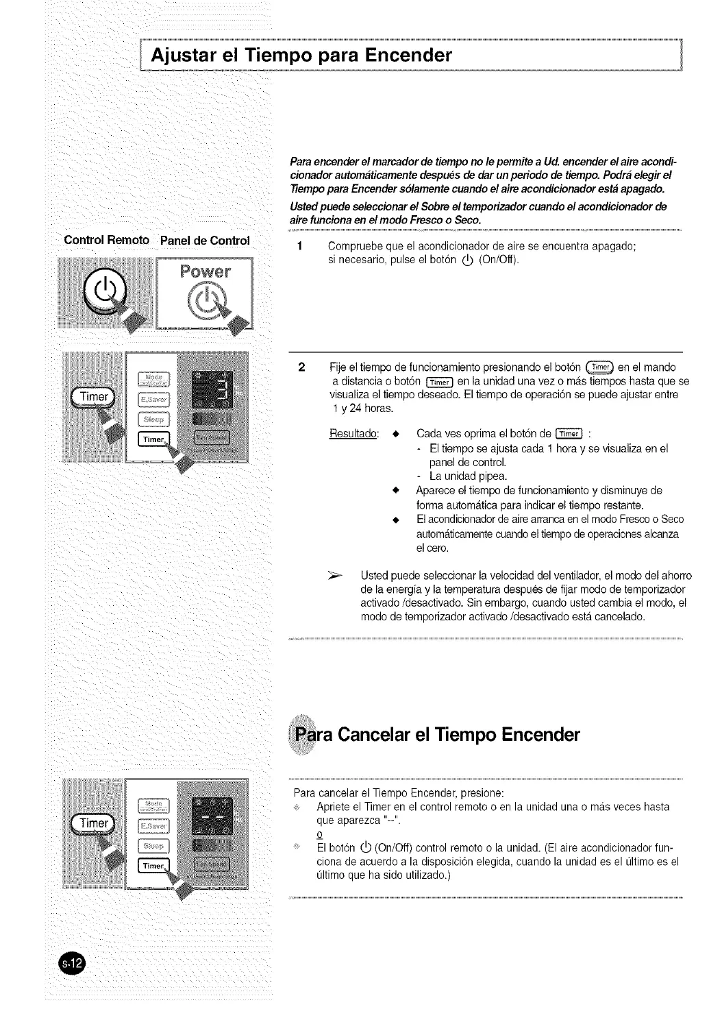 7Tempopara Encender s61amente cuando el aim acondicionador esta apagado.
