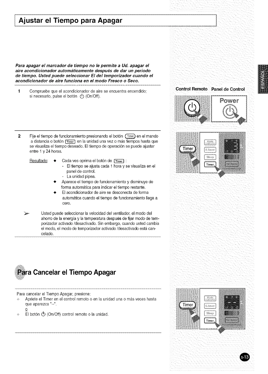 Apriete el Timer en el control remoto o en la unidad una o mas veces hasta