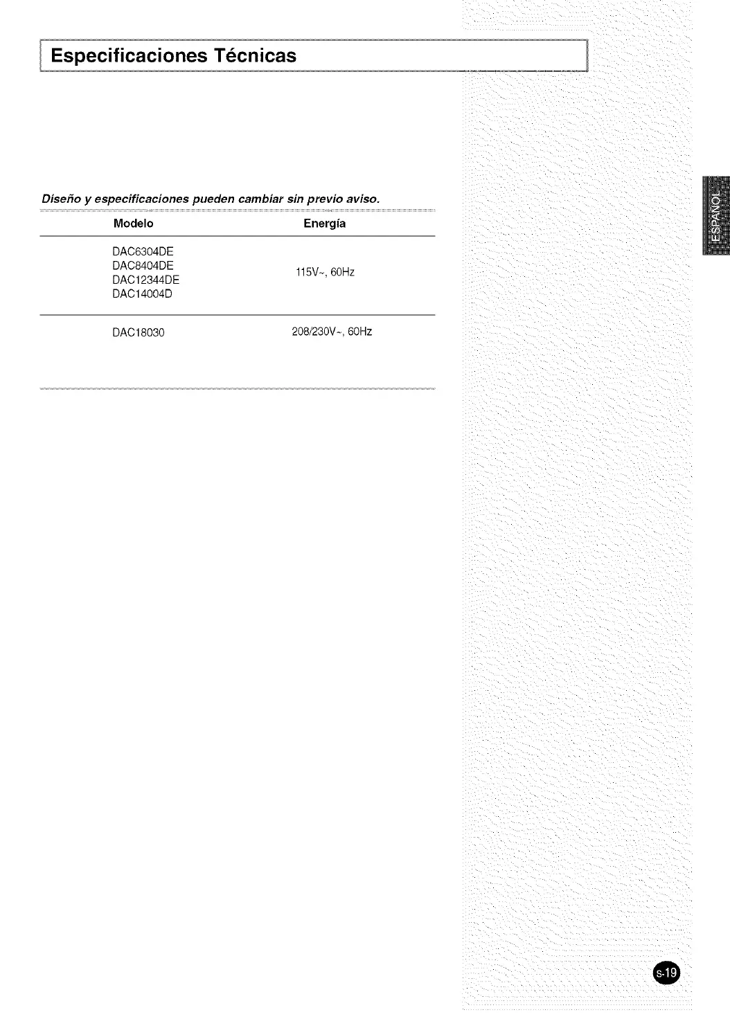 DAC18030 208/230V~, 60Hz