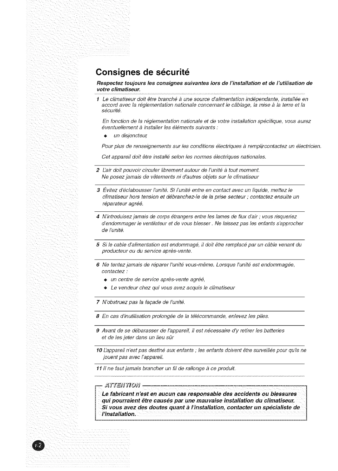1 Le climatiseur dolt 6tre branche a une source d'alimentation independante, installee en