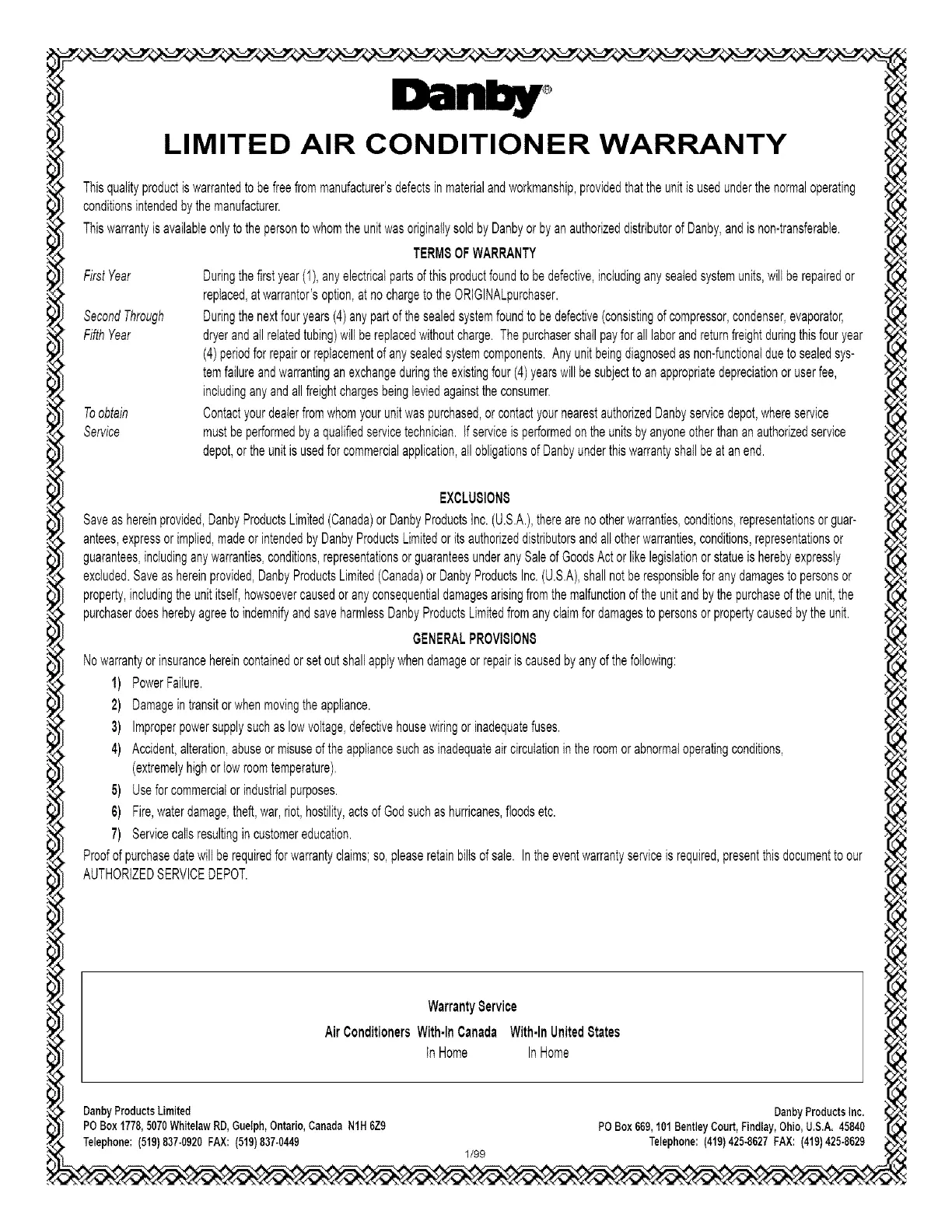 Saveashereinprovided,DanbyProductsLimited(Canada)orDanbyProductsInc.(U.S.A.),therearenootherwarranties,conditions,representationsorguar-