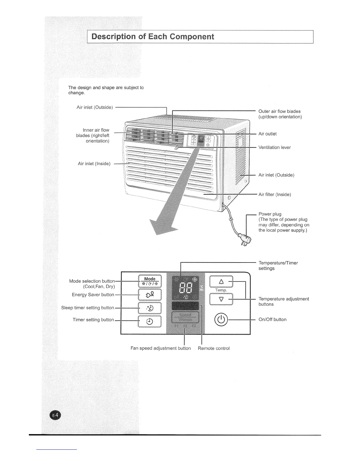 Danby DAC8008EE - Description of Each Component