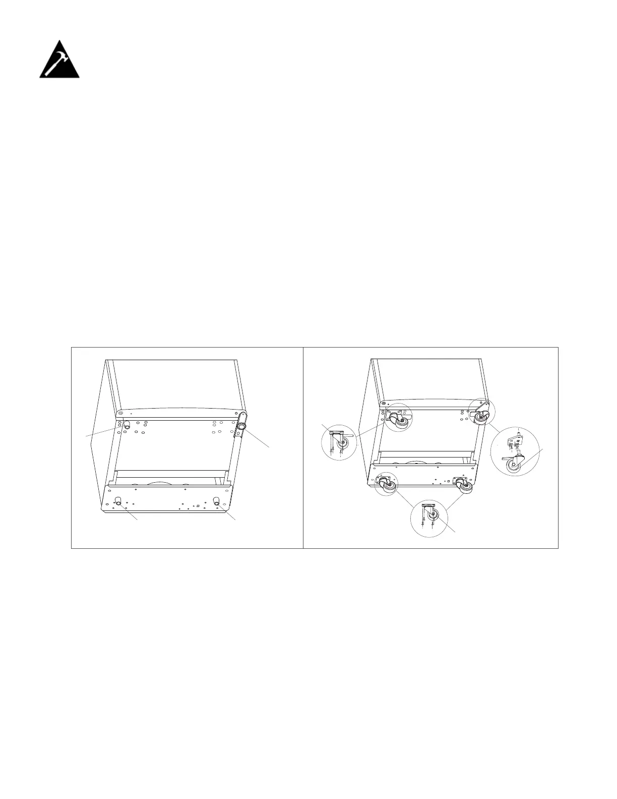 the casters in place. Note: The two casters with brakes should be installed at the front of the unit for easy