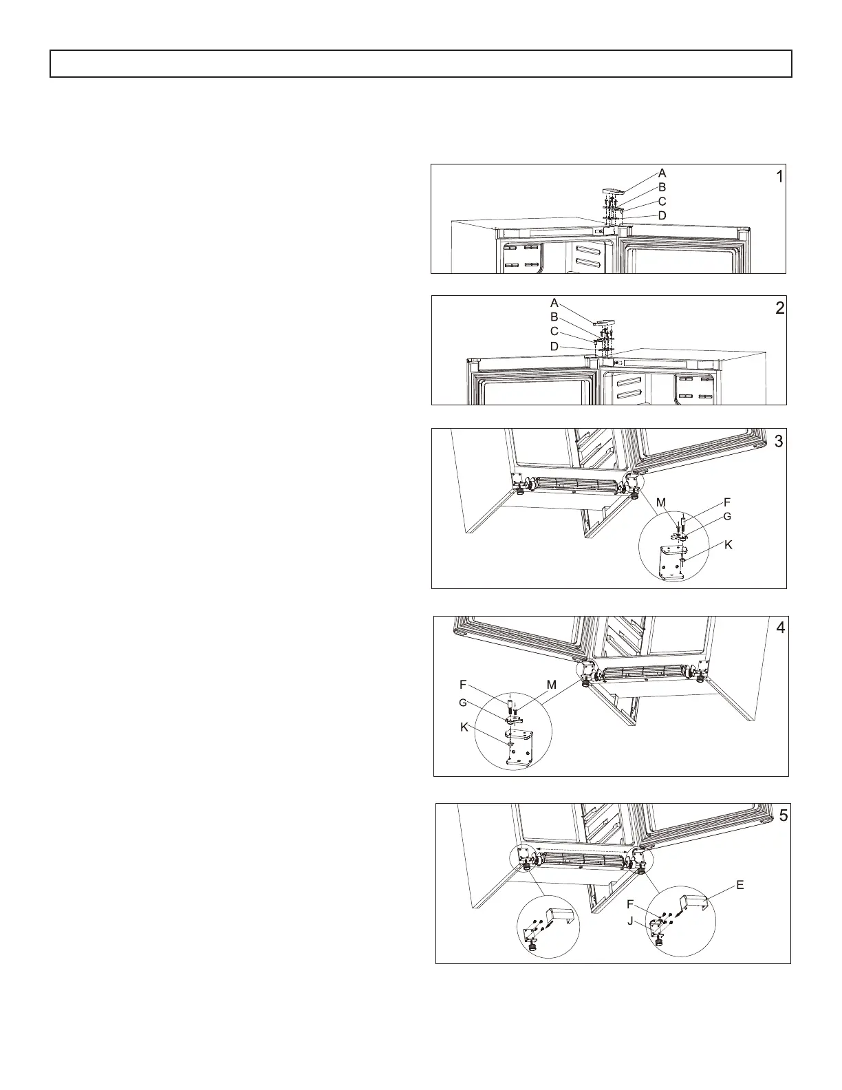 7. Réinstallez les axes de porte inférieurs (F et G).