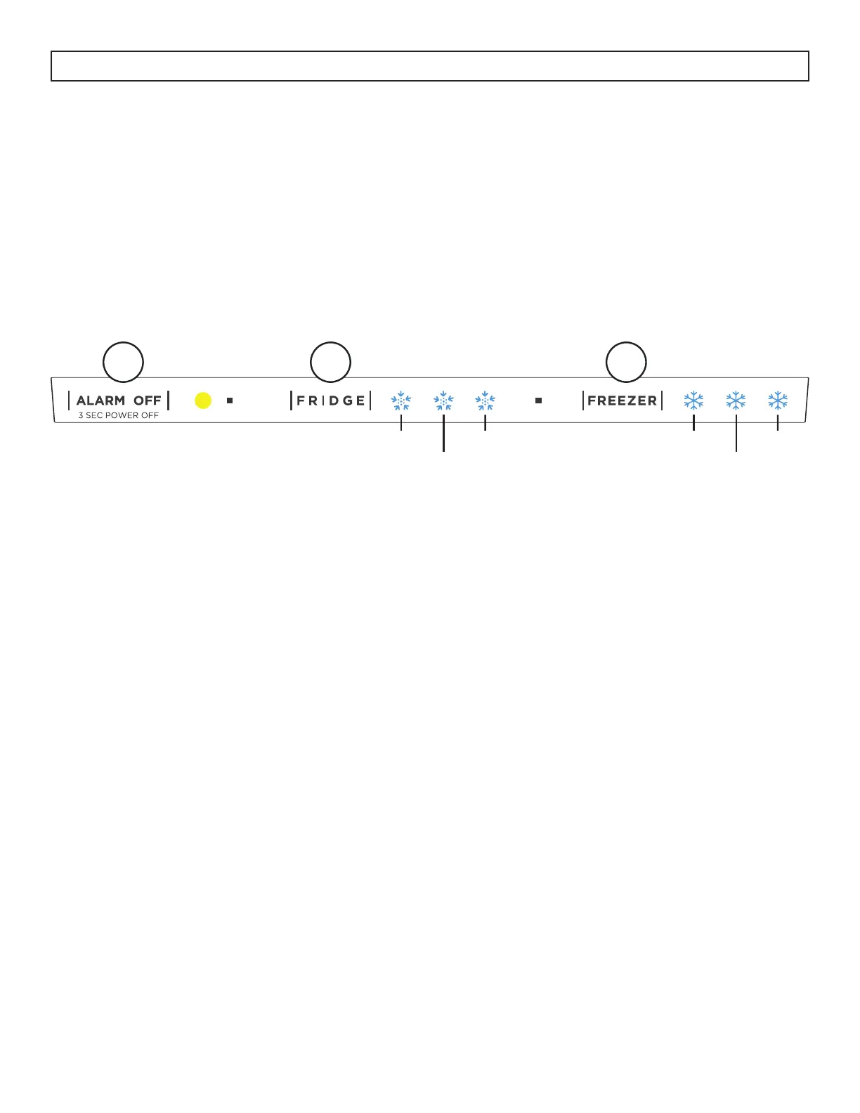 1. Alarm/OFF button: Press to silence the door alarm. Press and hold for 3 seconds to turn the appliance