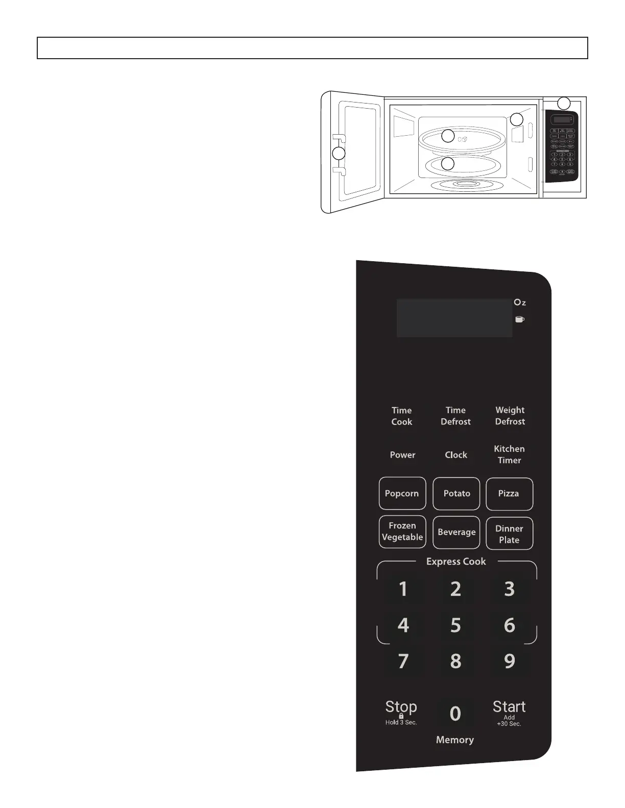 13. Star t/+30SEC Button: Used to start a cooking