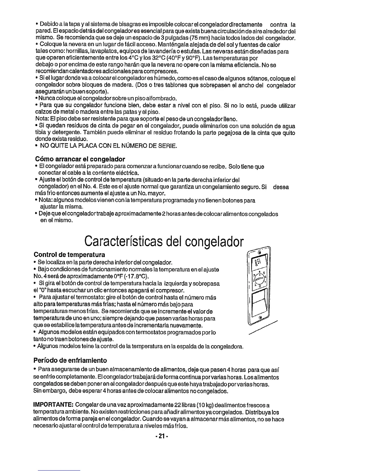 congelador) en el No. 4. Este es el ajuste normal que garantiza un congelamiento seguro. Si desea