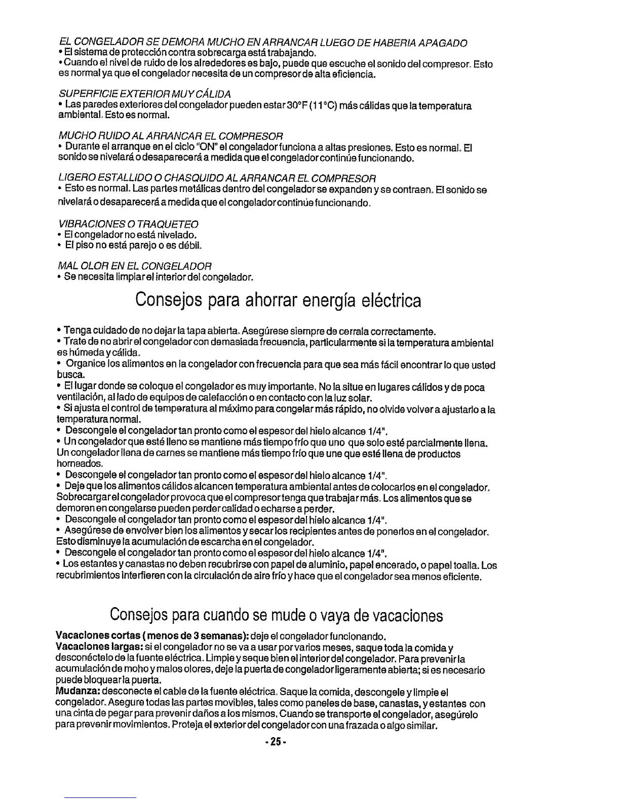 • Un congelador que est_ Iteno se mantiene m_.stiempo frfo que uno que solo est_ parcialmente Ilena.