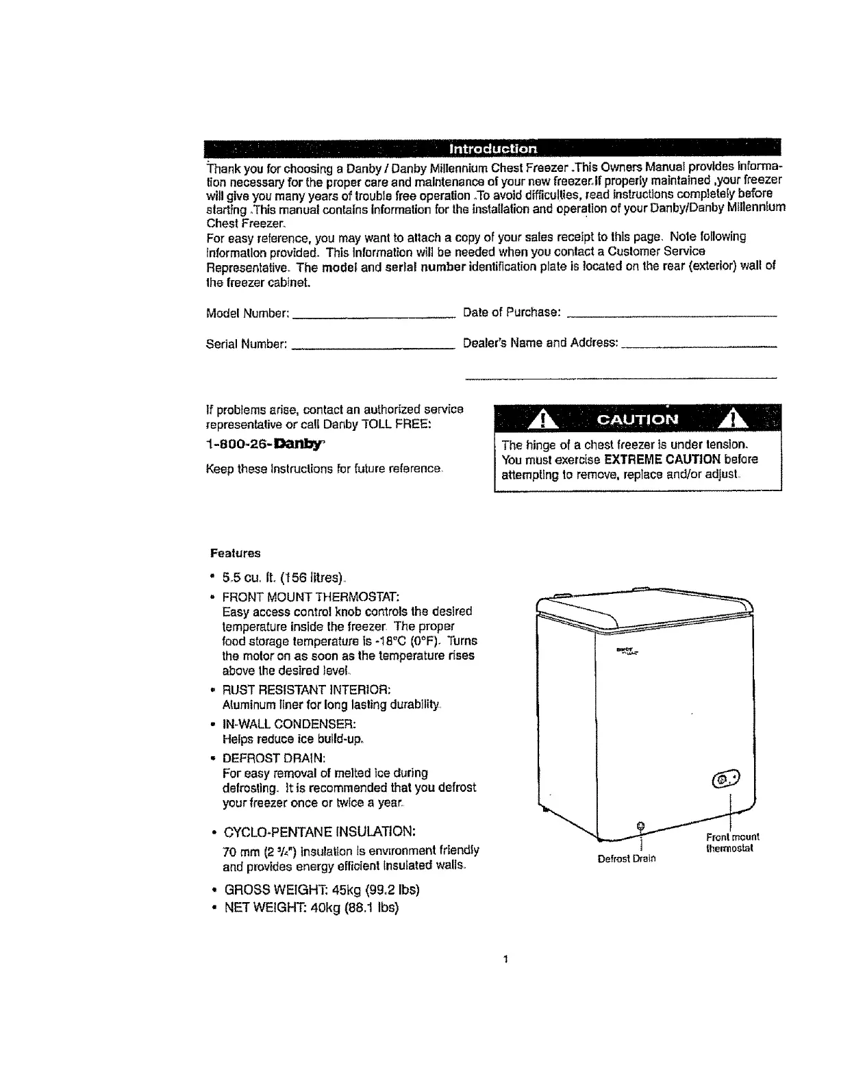 Thank you for choosing a Danby 1Danby Millennium Chest Freezer °This Owners Manual provides informa-