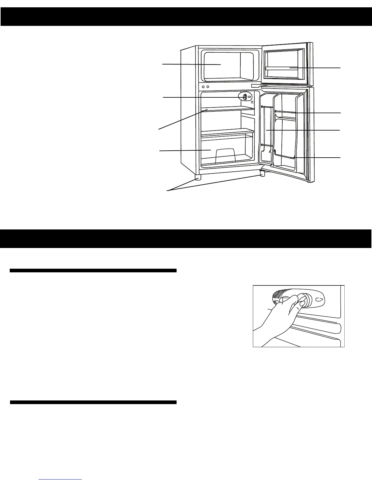 Turning the refrigerator temperature control to the “0” position stops the cooling cycle but does not shut off the power to the•