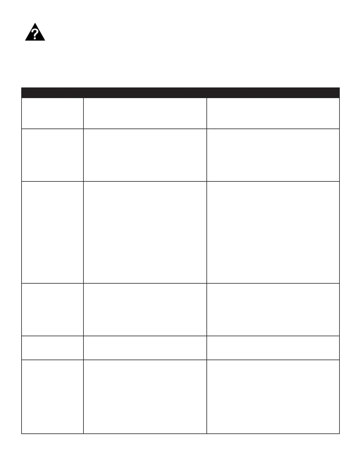 PROBLEM POSSIBLE CAUSE SOLUTION