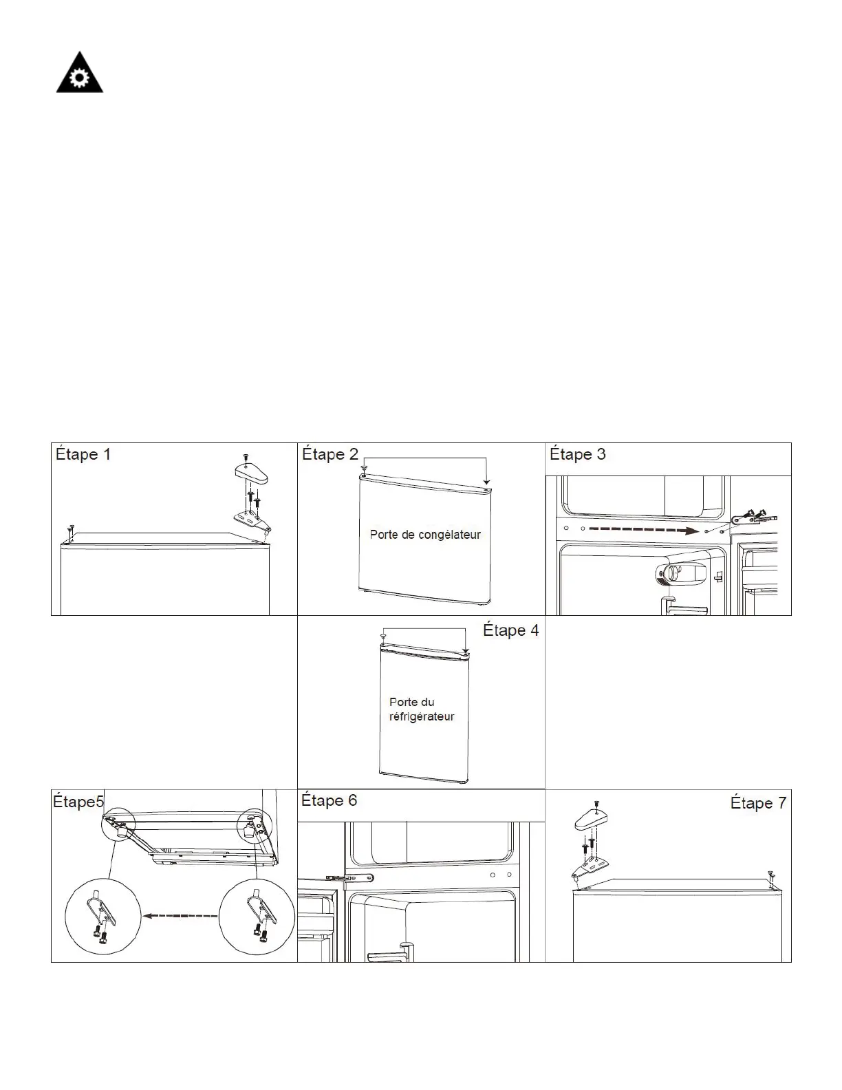7. Remonter la porte du congélateur. Remonter la charnière supérieure sur le côté gauche. Remont-