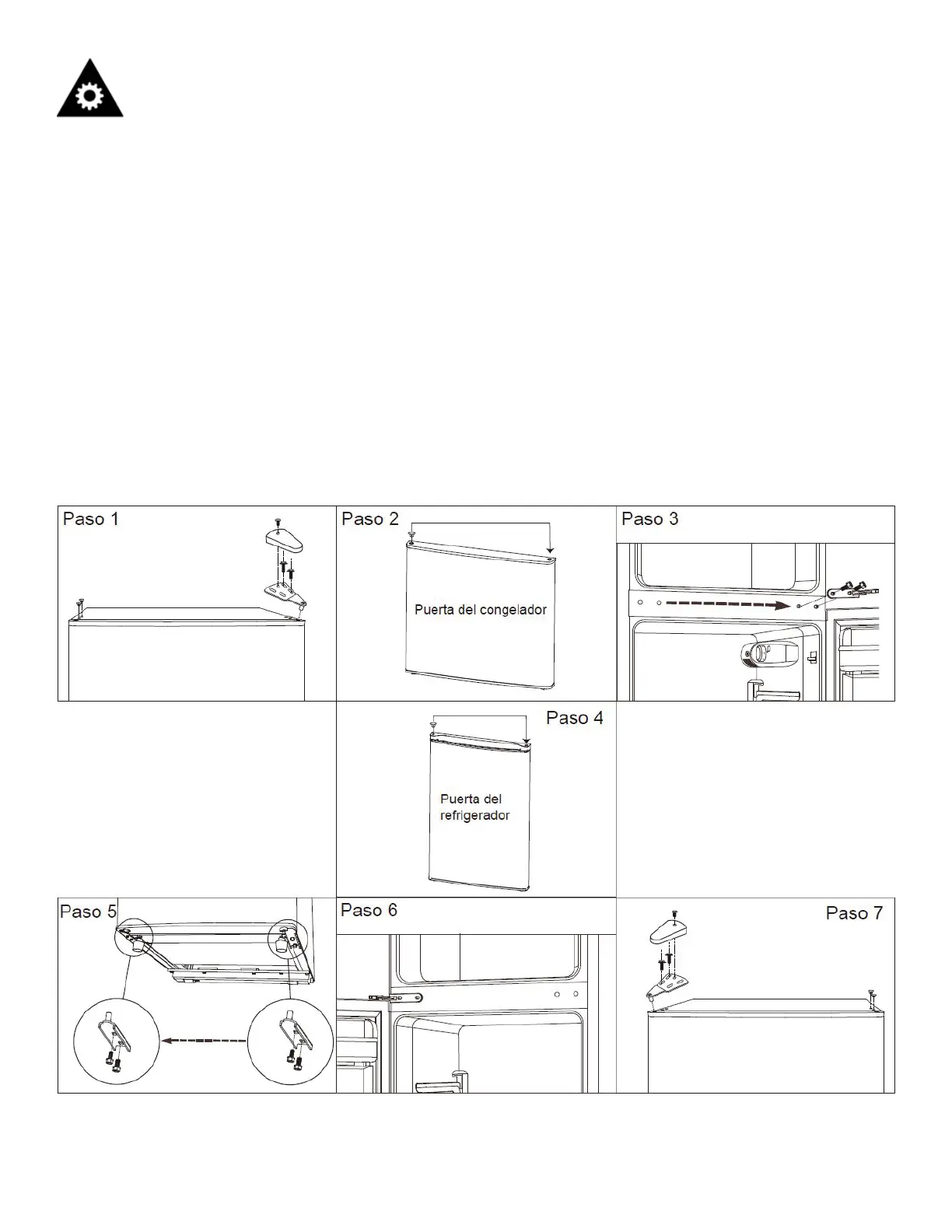 7. Vuelva a montar la puerta del congelador. Vuelva a montar la bisagra superior en el lado