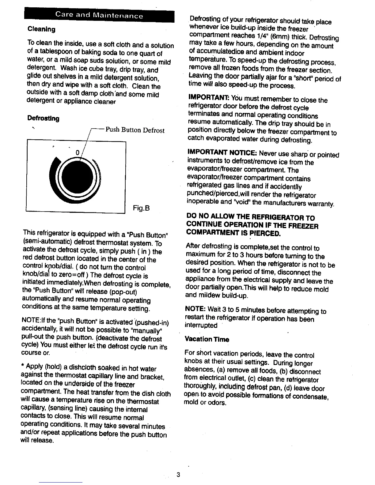 Danby DCR34W - Care and Maintenance; Cleaning; Defrosting