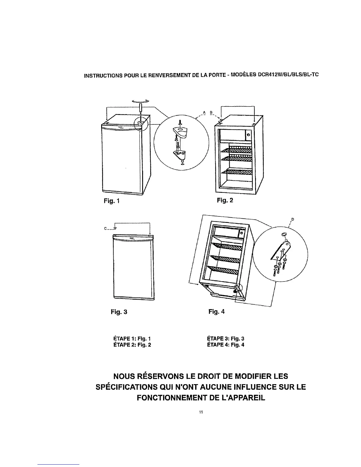 INSTRUCTIONS POUR LE RENVERSEMENT DE LA PORTE - MODELES DCR412W/BL/BLS/BL-TC