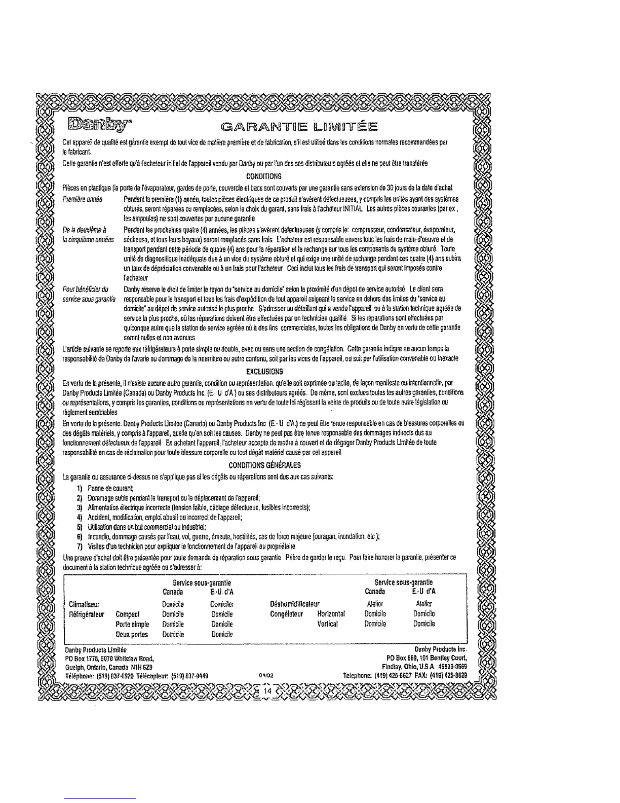 Enyetisdetapr_sanle.DanbyProduclsUmil_a(Canada)euDanbyProductslos(EoU d'A,)nopaul_lmtenseresponsableencasdBblessurescorporaIIssou