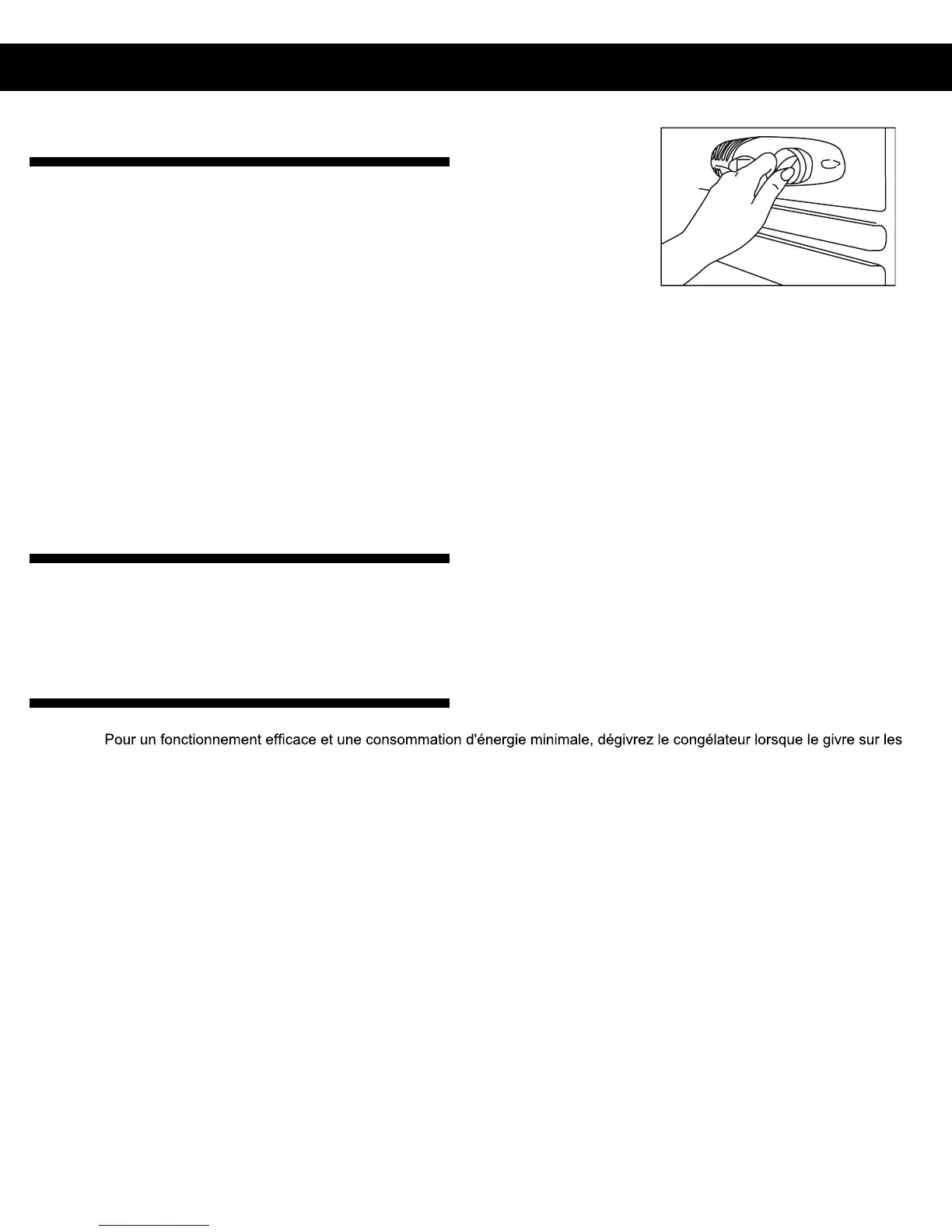 • Utilisez un grattoir en plastique, mais attention à ne pas endommager les surfaces intérieures du congélateur.