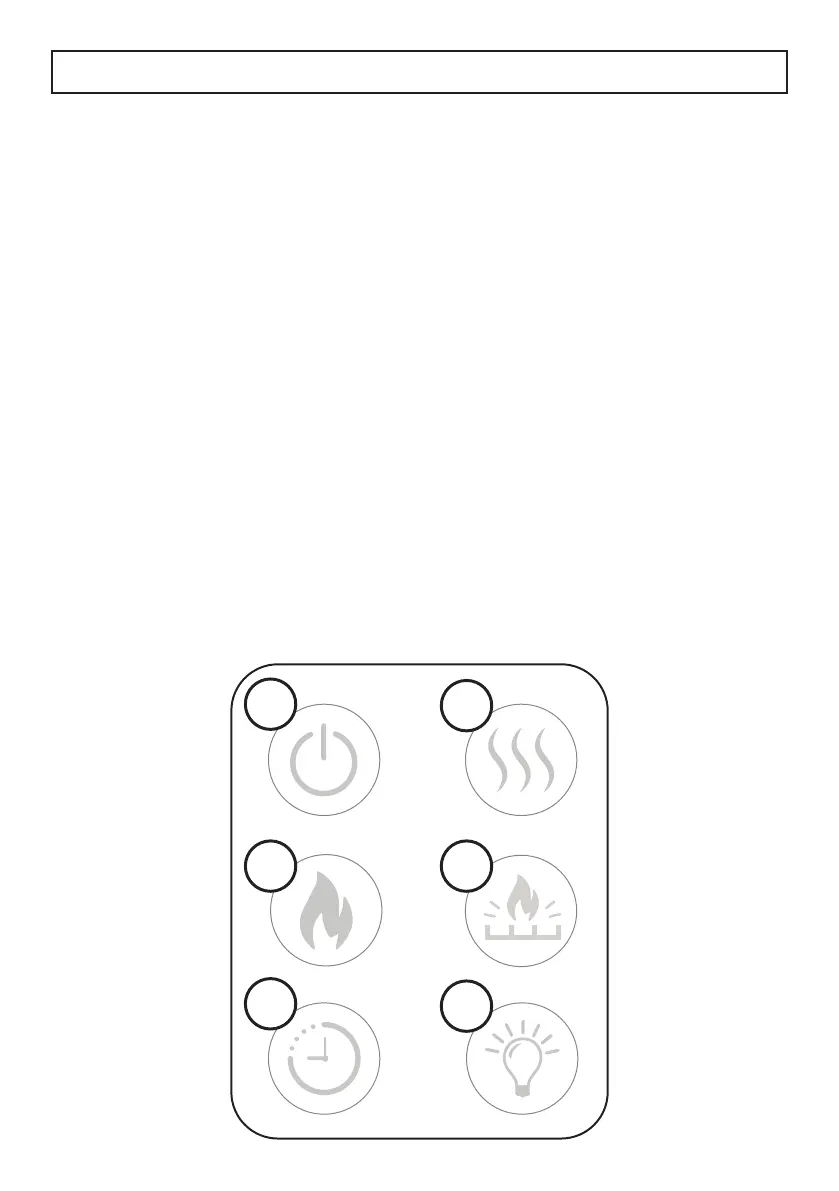 6. Light button: Press to adjust the fl ame brightness. There are 5