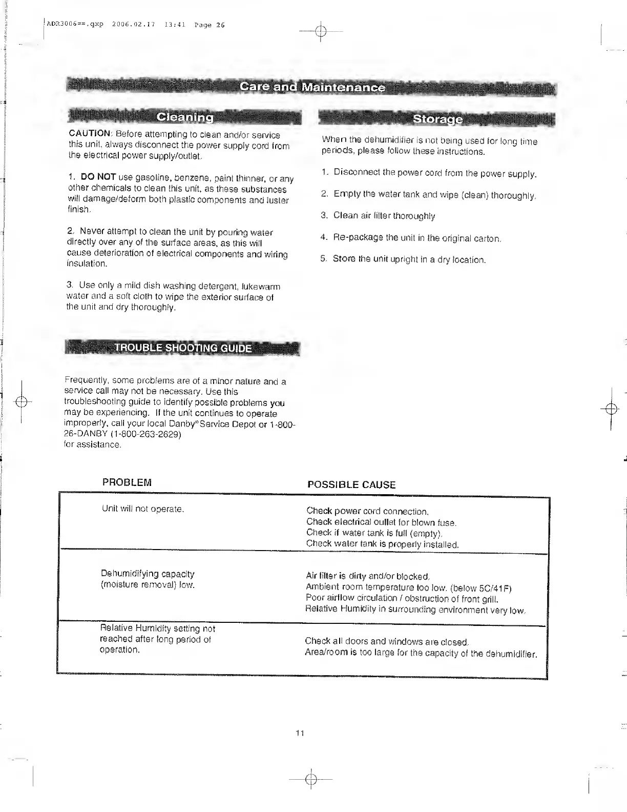 Danby DDR4007EE - Care and Maintenance, and Trouble Shooting Guide