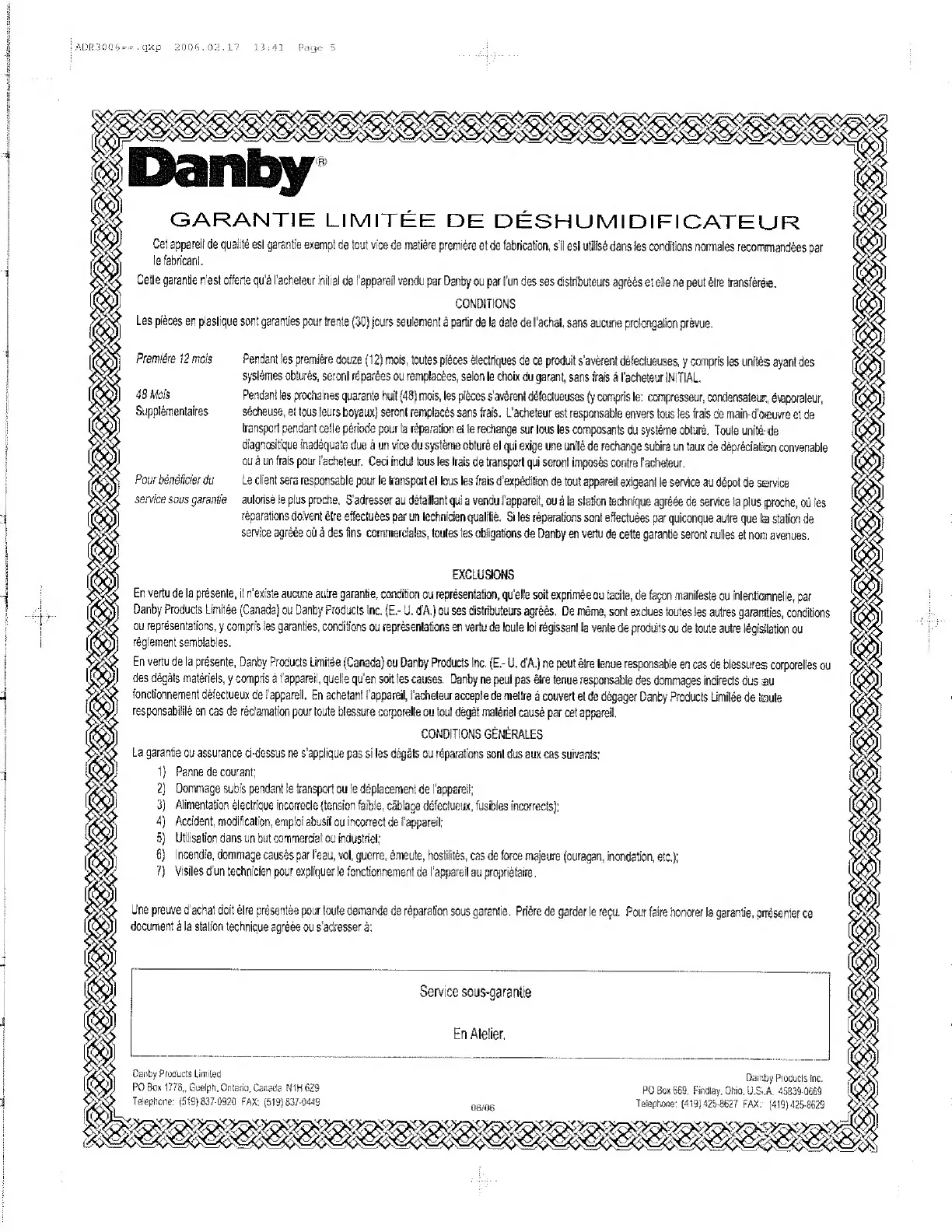 Danby DDR4007EE - Garantie