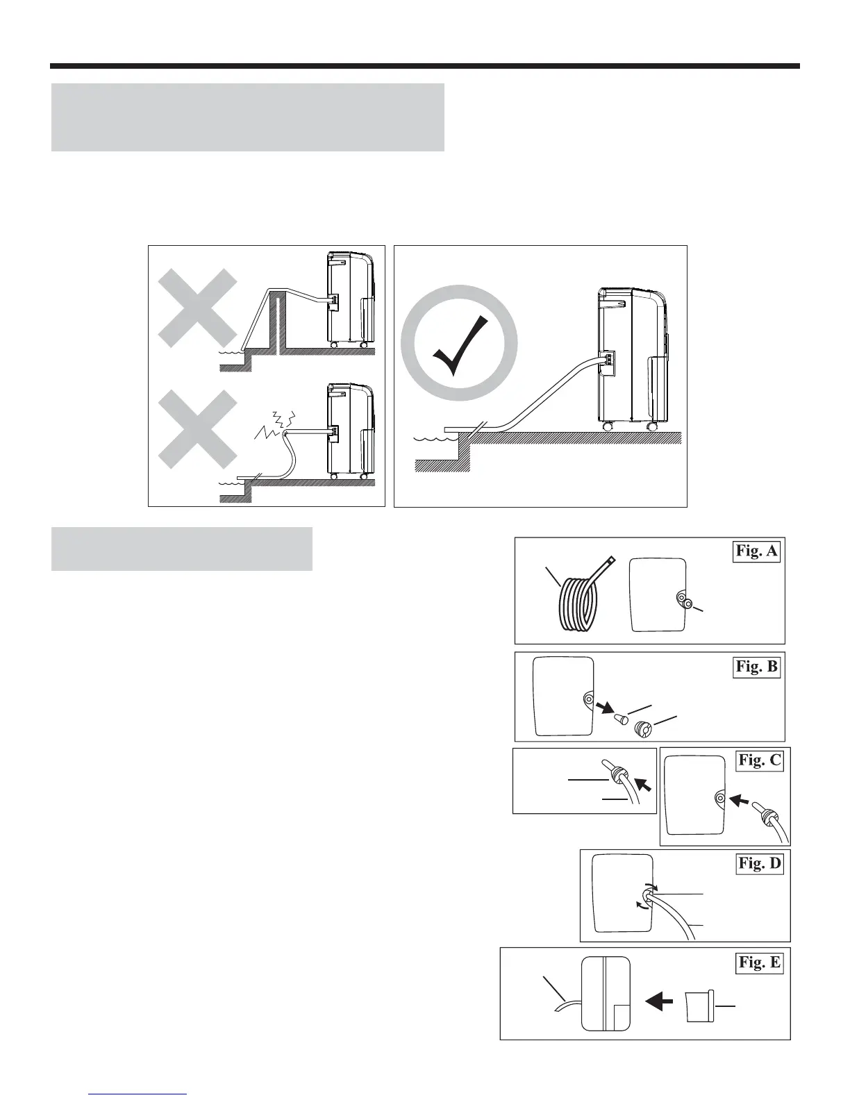 6. Conecte la manguera de drenaje al puerto de drenaje (Fig. D).
