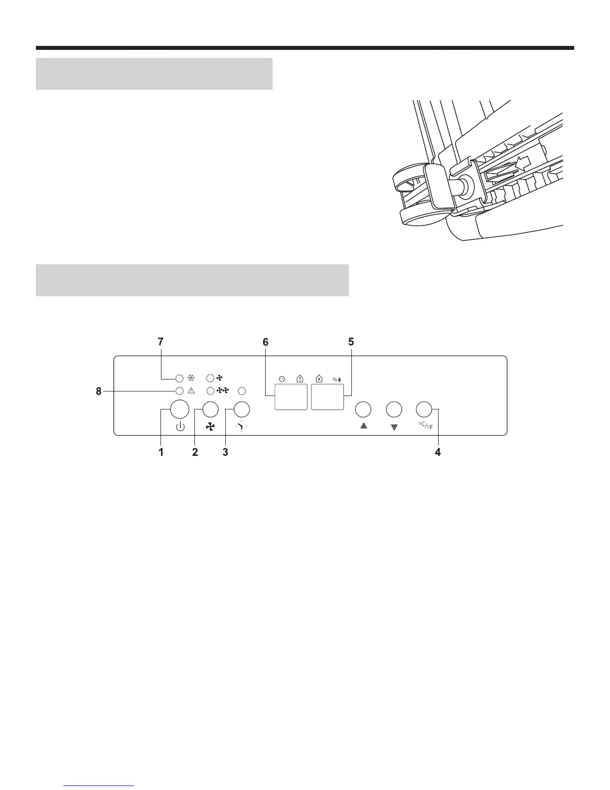 7) DEFROST LIGHT: When temperature is low, unit enters