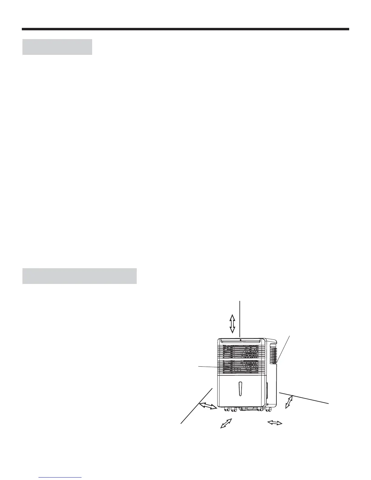 • Coloque el deshumidifi cador en un piso parejo y nivelado que sea lo sufi cientemente resistente como para soportar la