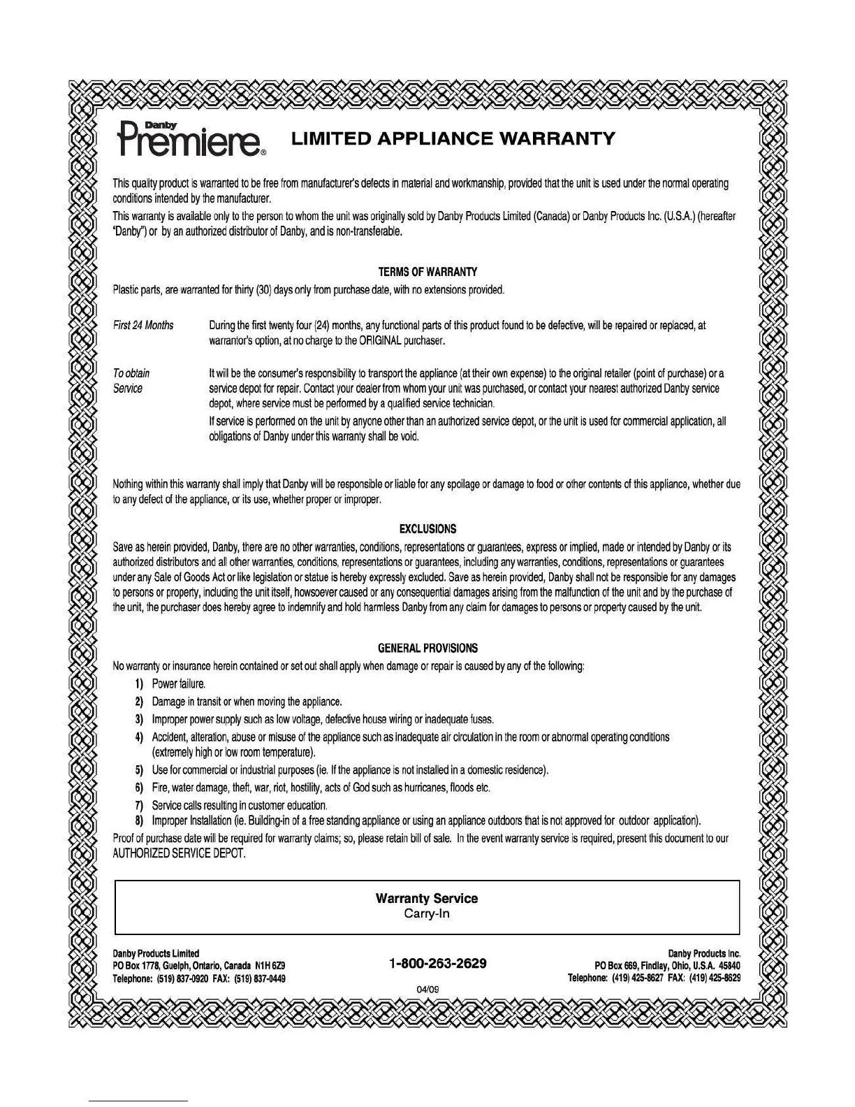 Danby DDR60A3GP - Limited Appliance Warranty