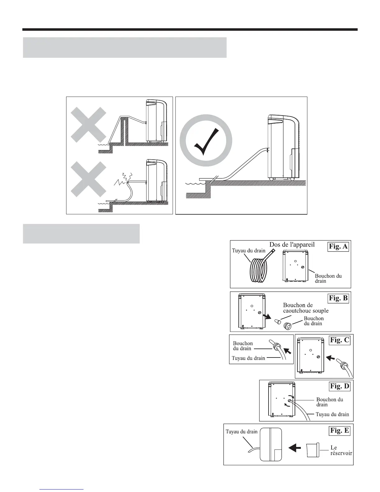 Lorsque vous utilisez la fonction de drainage continue, le tuyau de PVC doit être placé horizontalement en-dessous du