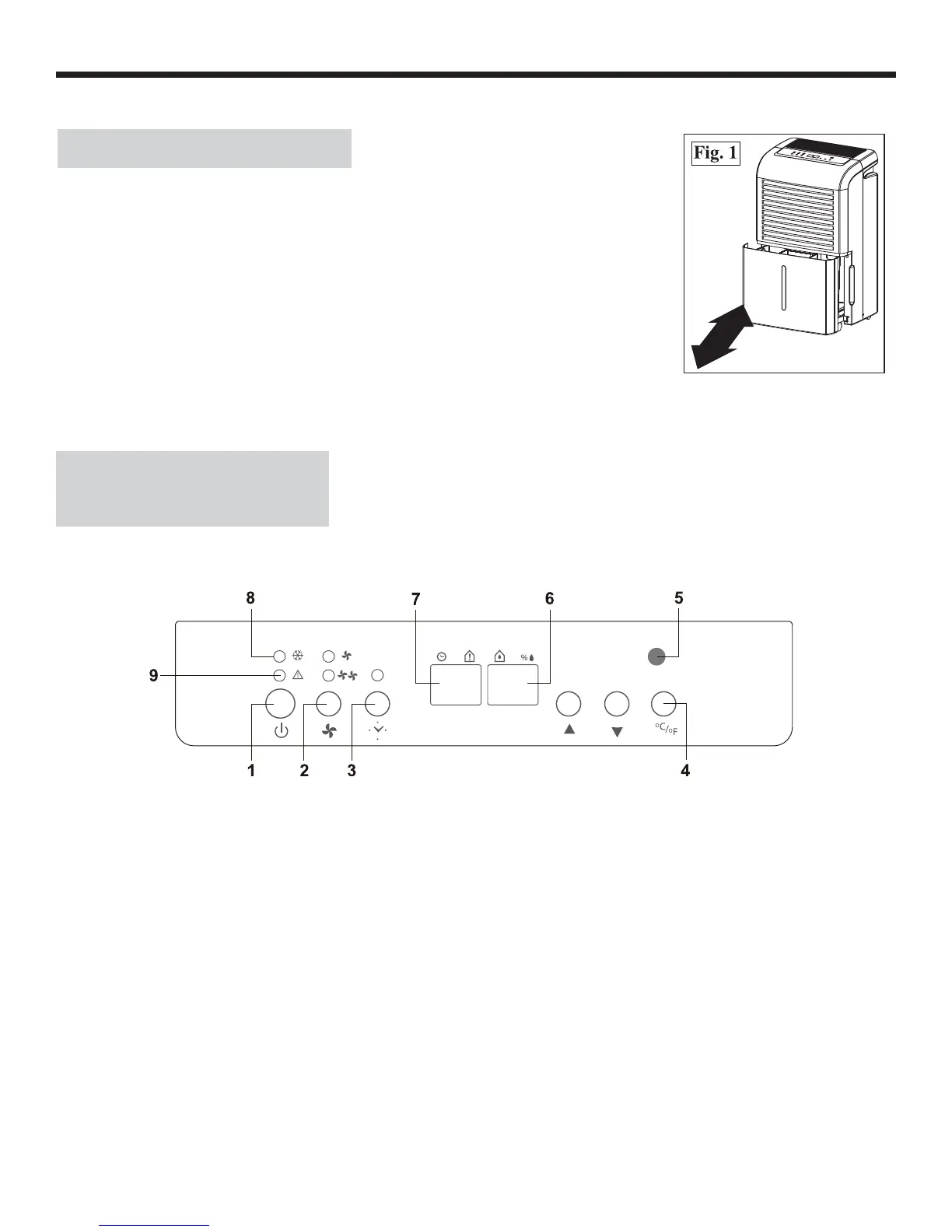 9) BUCKET FULL LIGHT: When the water tank is full, the